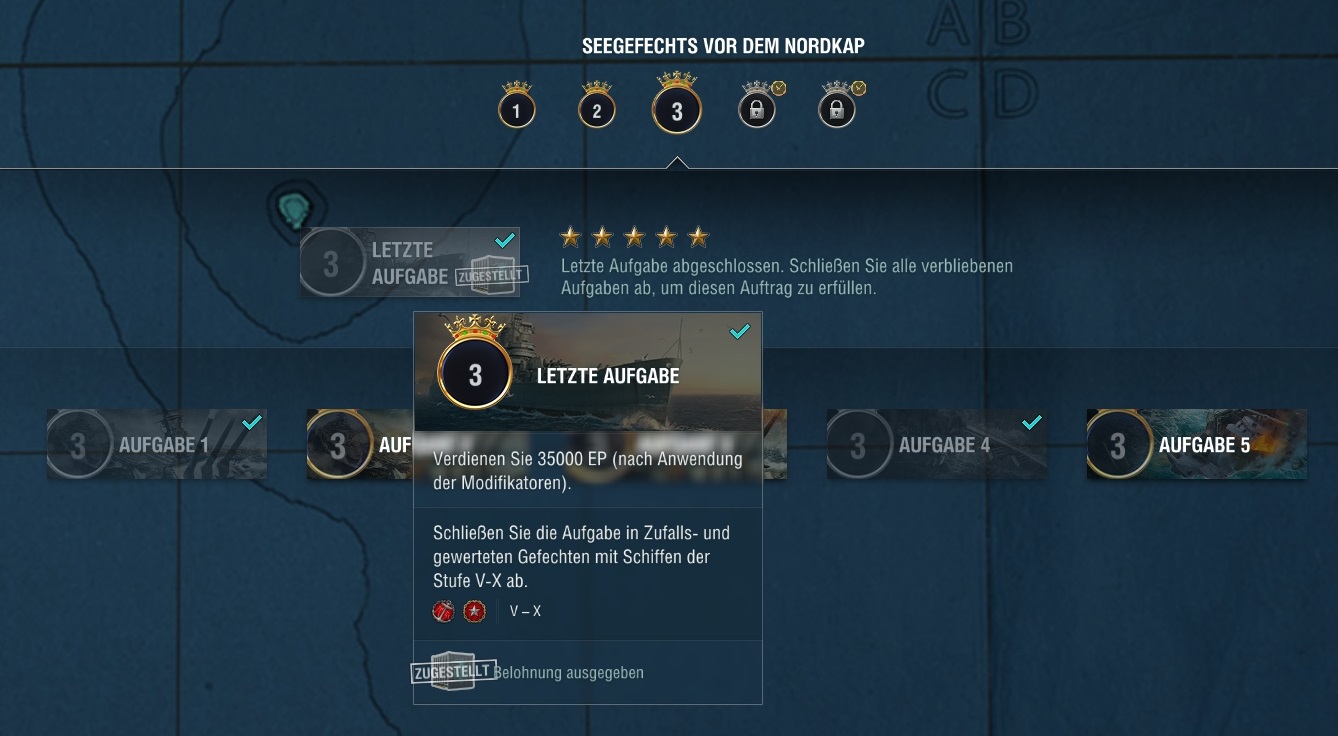 Problematischer sehe ich da die Erfolge auf Stufe 4. Dreadnought und Großkaliber sind beides keine Erfolge die man einfach mal so nebenbei macht. Selbiges gilt für 90k Torpedo-Schaden auf Stufe 5. Es gibt zwar auch 1 Stern Missionen, die einfach gehen, weil Standardzeug, aber das ist dann schon etwas viel gefarme.