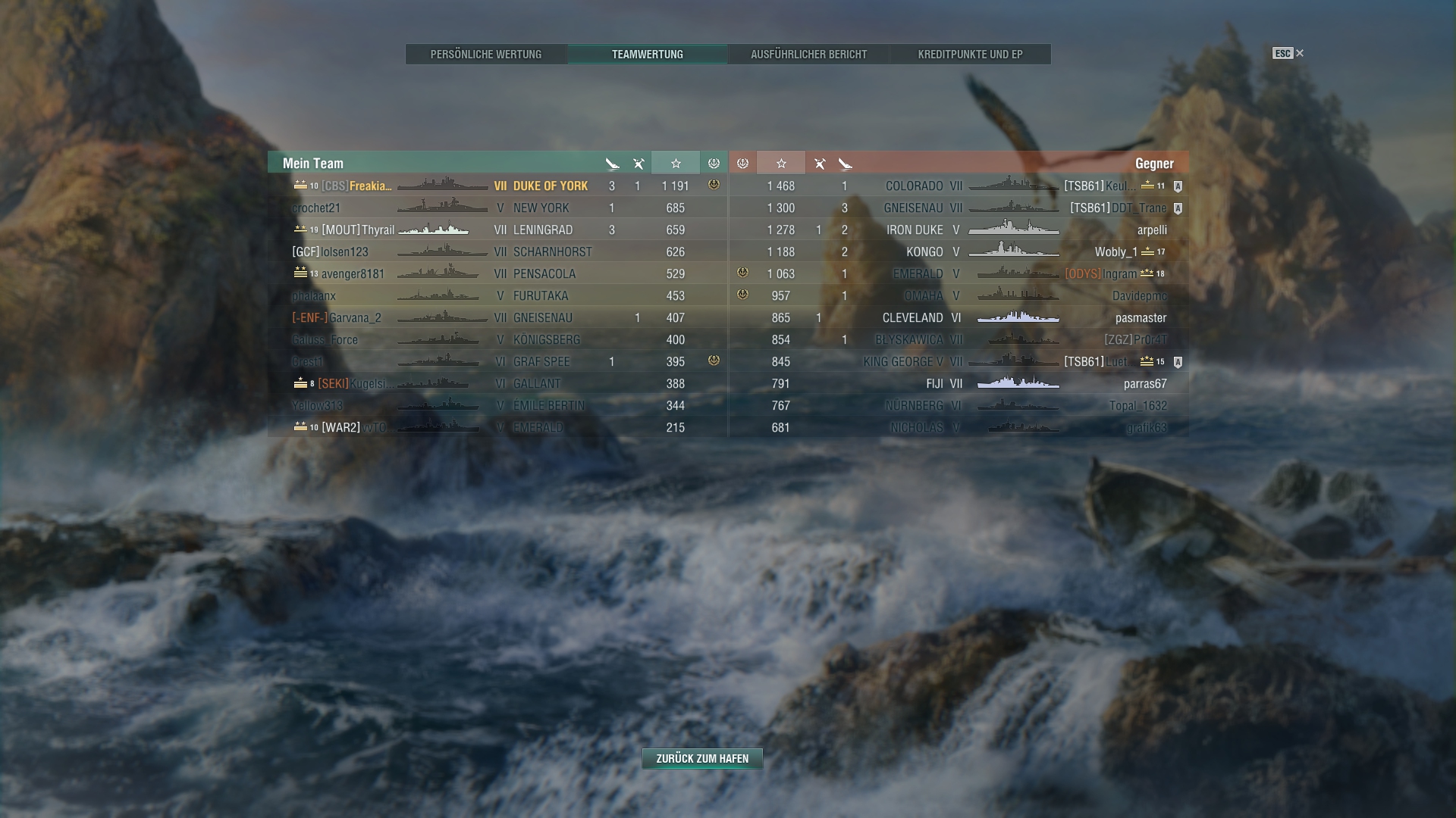 Mit TRB aber arg egoistische Spielweise ... und typisch IJN-DD: Wenn das MM passt, dann geht was. In der 2. Runde dann mit CV, Radarkreuzern, vielen Jagd-DDs und ein paar Missouris sieht das natürlich schon gaaanz anders aus ...