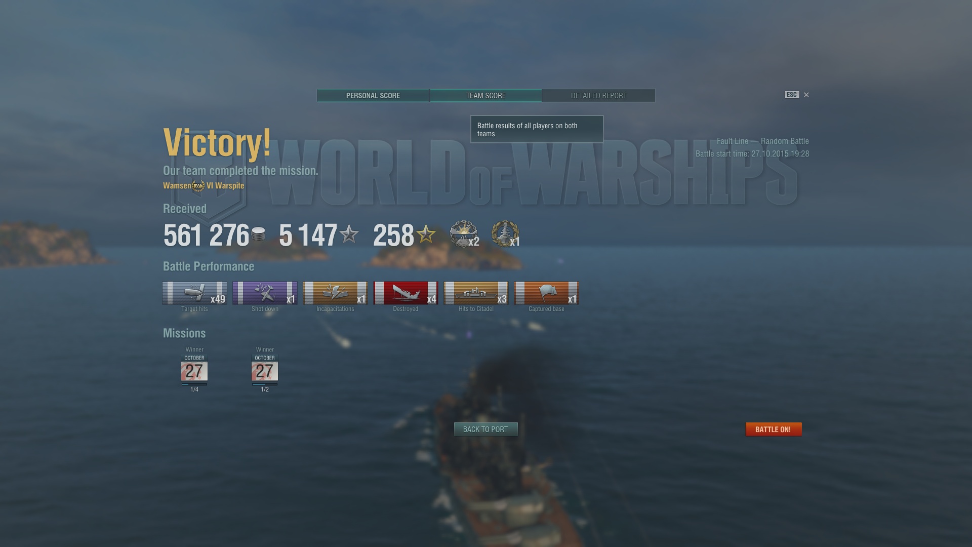 Tolles Schiff und dazu habe ich auf ihr noch eine Siegrate von 80% nach 20 Gefechten und einen Durchschnittsschaden von 61k. Fast genug angegeben, anbei noch die Screens von meinem bisher besten Gefecht mit der Warspite.