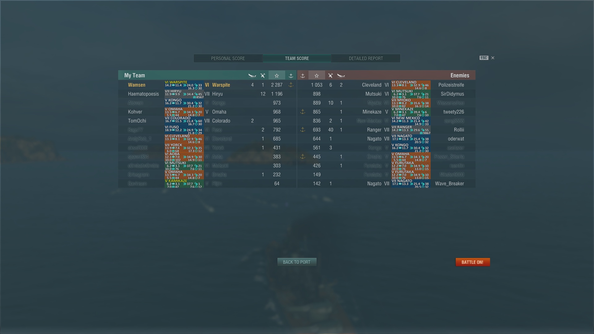 EDIT: Gerade gesehen mit dem Divisionsspawn. Das Problem soll ja mit 0.5.1 behoben werden, das man an verschiedenen Ecken spawnt, dann sollte das nicht mehr (so häufig) vorkommen. Ich kann aber auch die Leute verstehen, wenn ich mal mit einem Kumpel in der Division unterwegs bin, dann rollen wir schon immer mit den Augen, wenn wir mal wieder getrennt starten. Wenn das dann fünfmal hintereinander passiert, dann fahre ich auch mal quer über die Karte. Wenn ich einfach nur mit ihm Skypen will, brauchen wir dafür kein WoWs spielen.