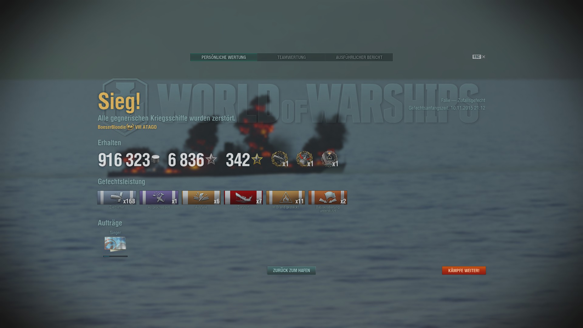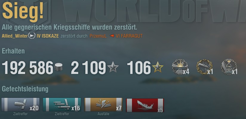Hab gestern meine mit Abstand beste Runde mit der Atago abgeliefert und gleichzeitig einen neuen Rekord, was Versenkungen in einer Runde angeht.