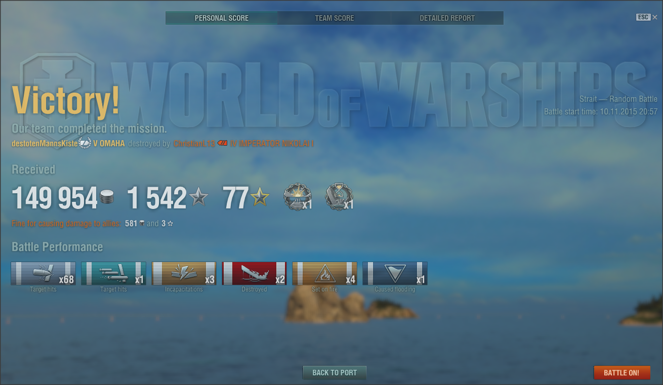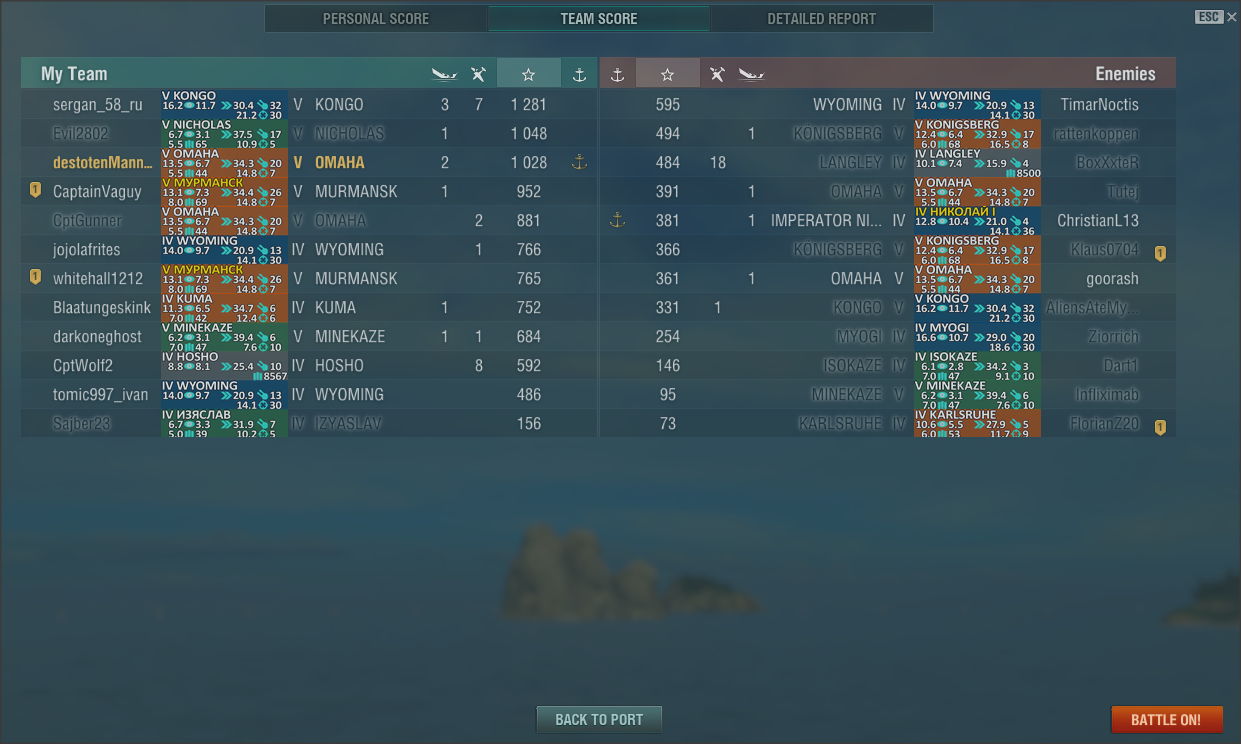 Insgesamt hatte es mit dem Schiff nicht so viel Spass gemacht, da man oft (mangels genügend Spieler) in Tier 9 und 10 Gefechten landete. Dort dominierten die starken CVs und vor allem die Schlachtschiffe.