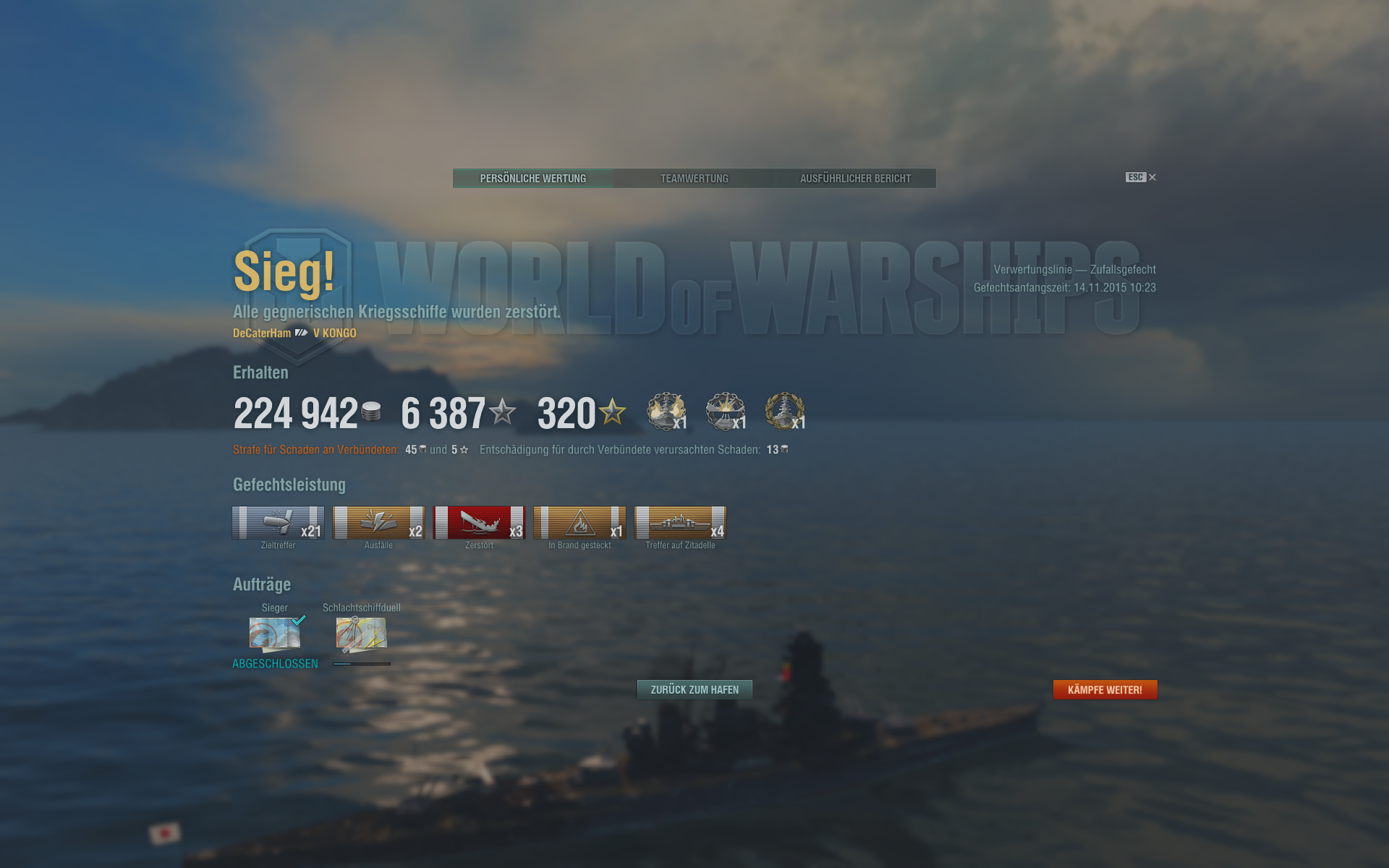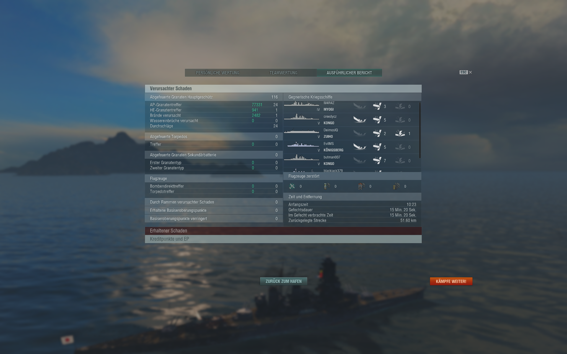 Waren insgesamt sehr erfreuliche Runden heute. Auch mit der Nagato bekomme ich so langsam Übung. Ist vor allem ein ziemlich zäher Pott.