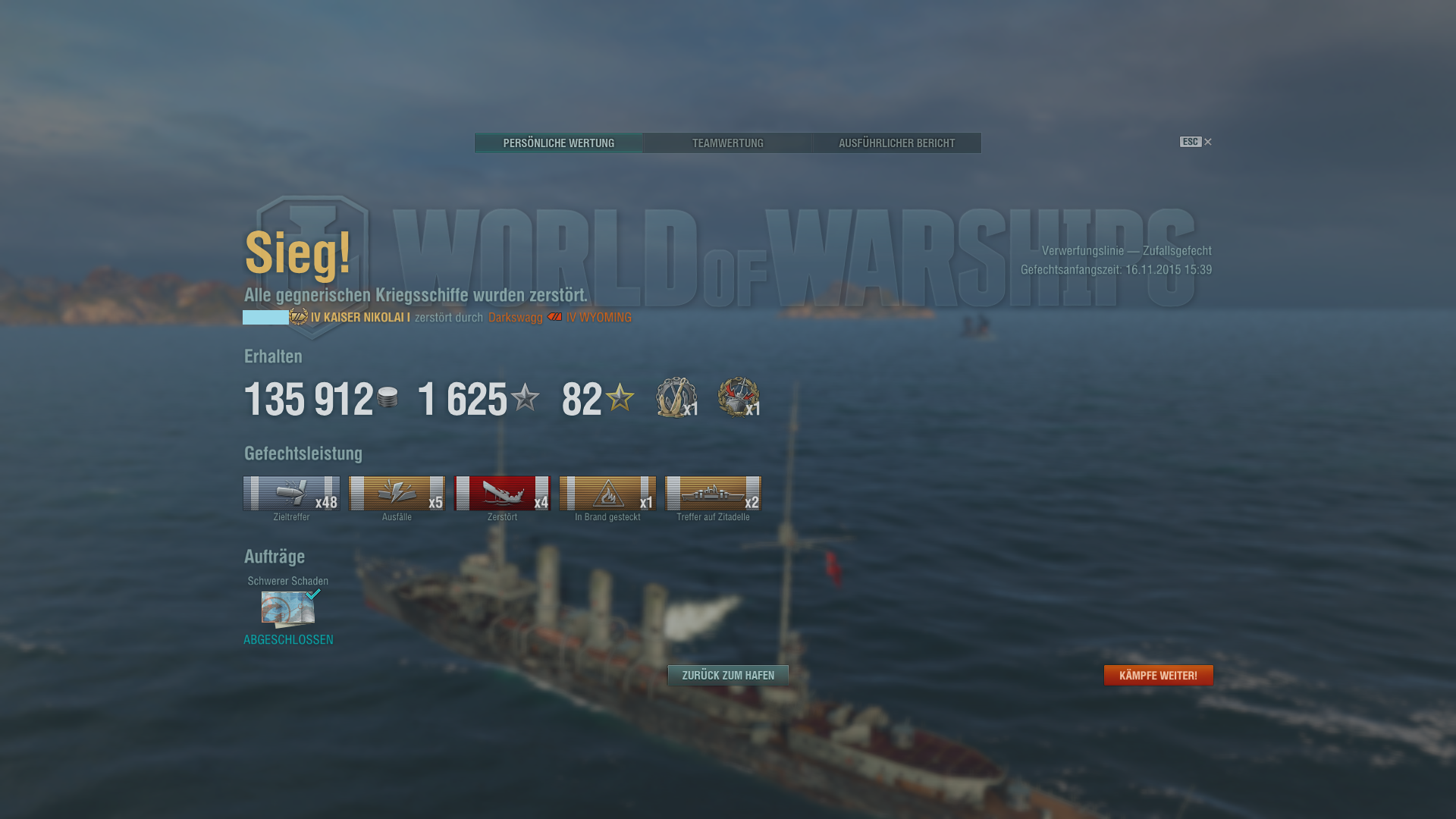 Wo sich gerade mal wieder die Diskussion um Premiumschiffe dreht, habe gestern mit meiner Tirpitz meinen SChadensrekord auf 160k hochgeschraubt, Ergebnis dann im Spoiler: