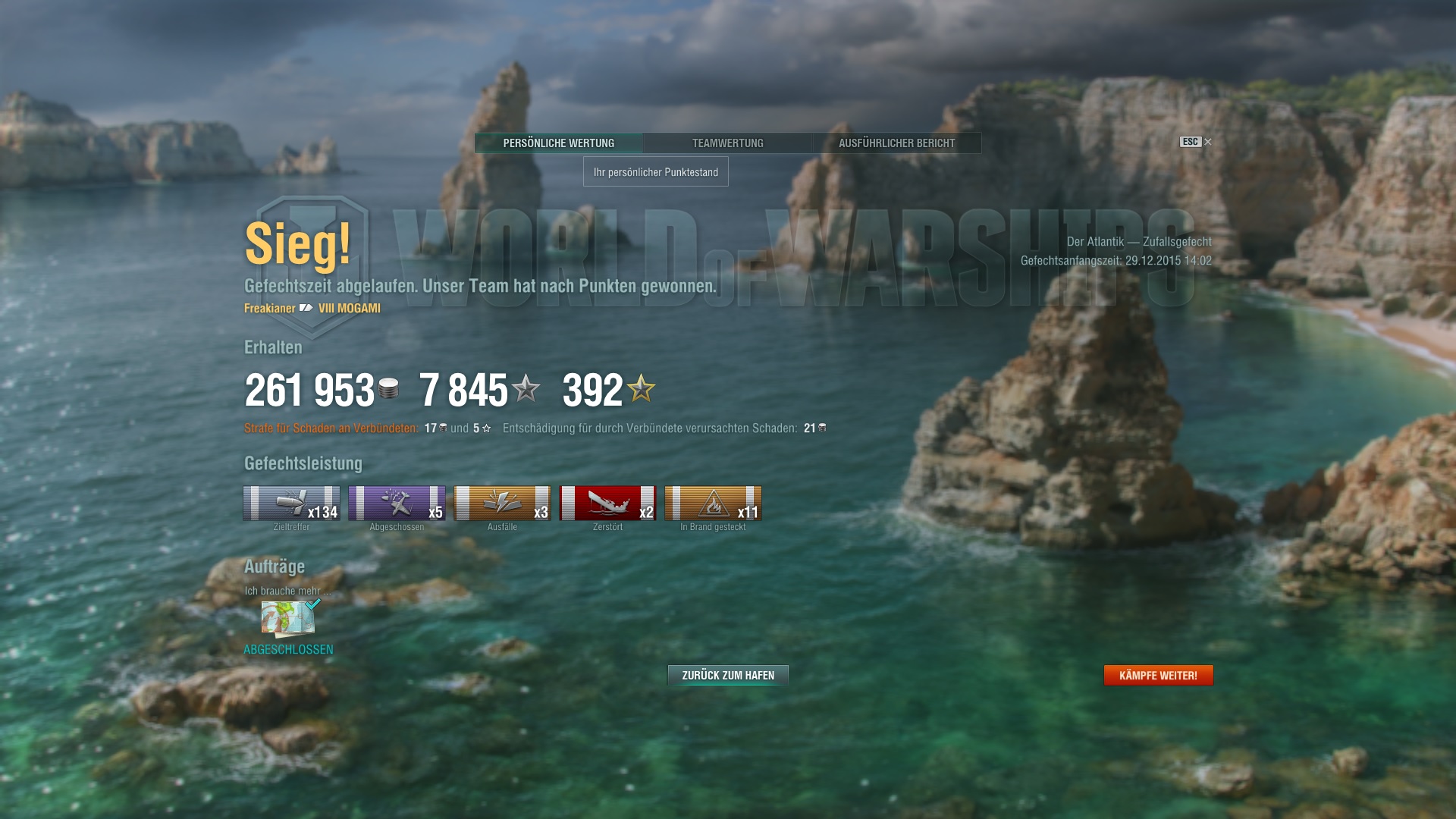 Hab dummerweise von unserer Runde eben keinen Screenshot gemacht... waren schließlich nur 15K Captains XP... **Peanuts!**