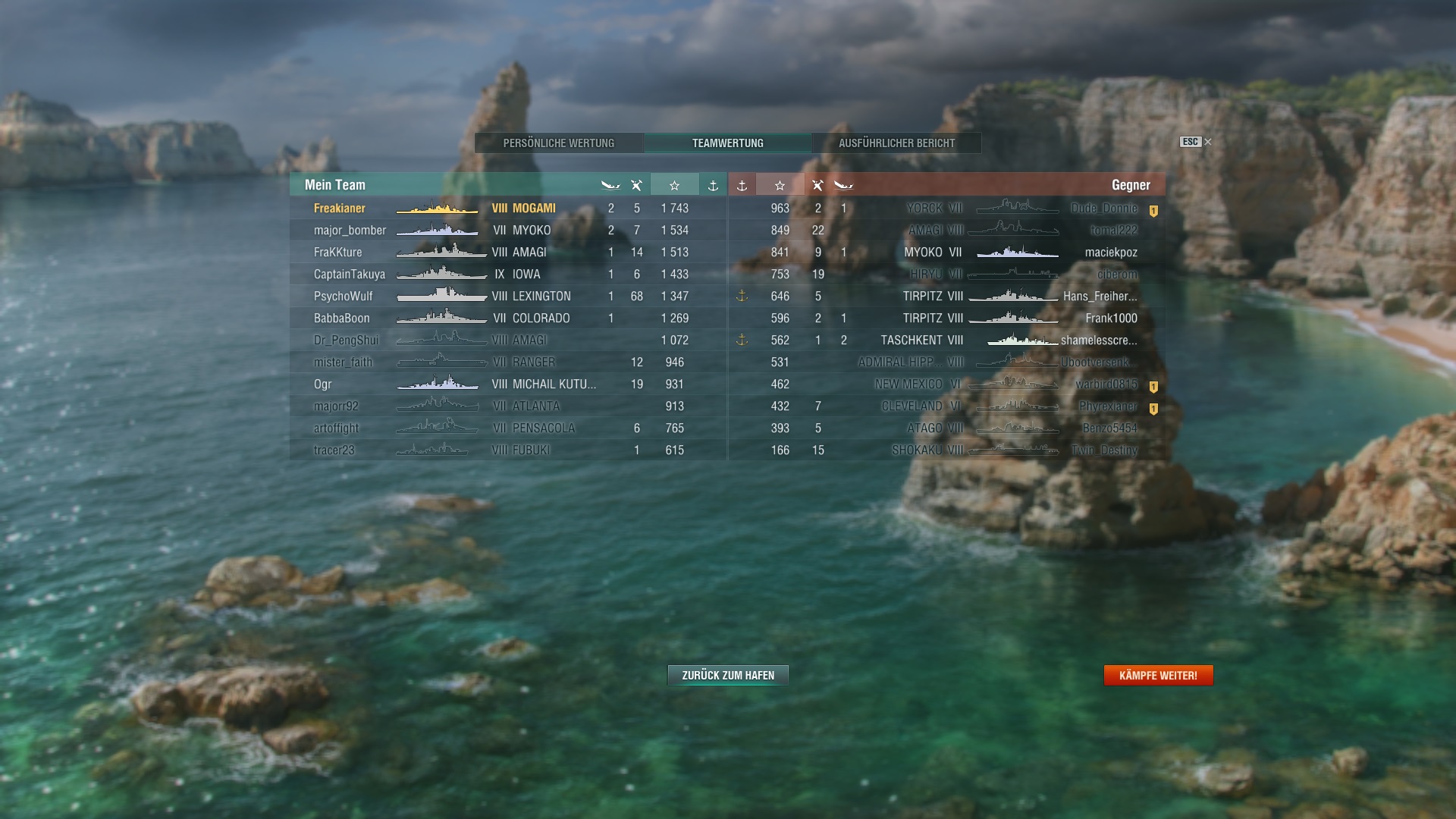 Gut noch allzuviele Games habe ich nicht mit der Tirpitz, wird sich also noch etwas einpendeln der Schaden aber das ist mal eine Ansage was den Schaden angeht ;D