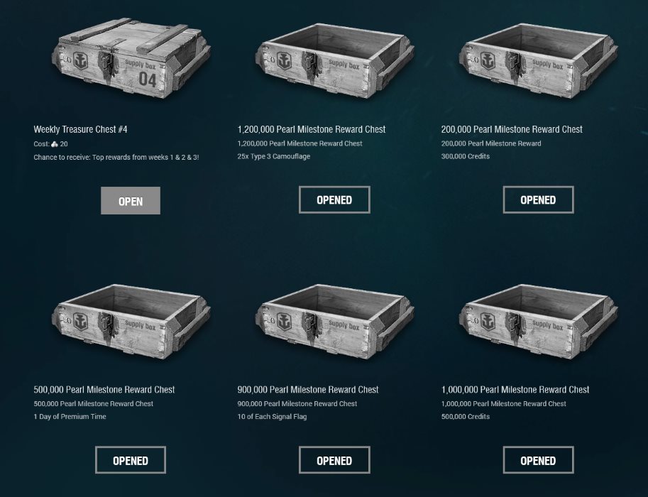 Habe heute wieder 800K Kredits, 1 Tag Premium, viel Tarnung und jede menge Flaggen bekommen und im Prinzip einfach nur gespielt. Man muß aber auf die Seite gehen und die Kisten aufmachen, weil von alleine kommen die Sachen nicht.