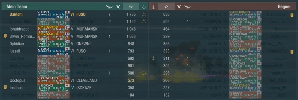 Naja ... war viel Glück. War zwar vorne, aber die ARPs waren einfach schlecht und die DDs haben immer versucht zu cappen, aber haben ihre Torps vergessen.
