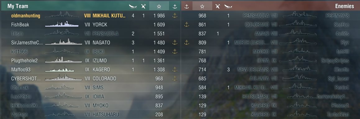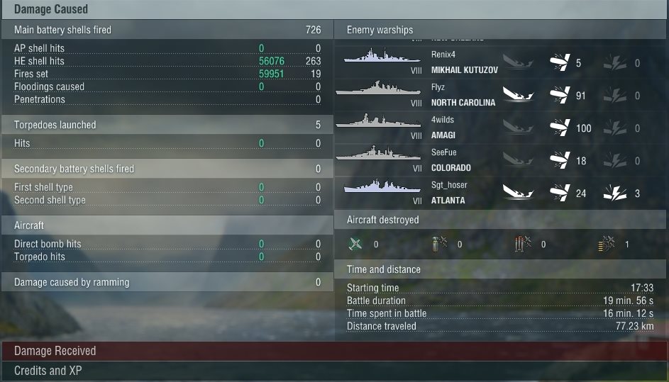 Keine besonderen Punkte/Xp oder Schaden(hab die meiste Zeit in's Wasser neben DDs geballert), aber einfach ein toll gelaufenes match
