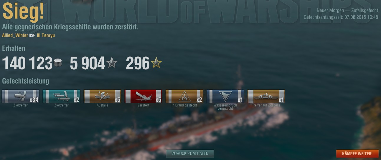 Ich brauche jetzt eh extrem viel Credits/Silber, um die "Pepsi" aufzurüsten. Parallel habe ich angefangen, die japanischen Schlachtschiffe hochzuspielen.