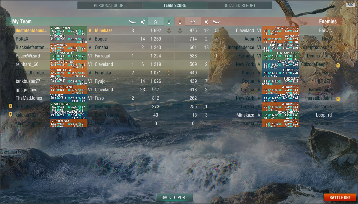 So wie ich das sehe, muss man je nach Schiff seine Spielweise anpassen und die North Carolina ähnelt da eher agilen, japanischen Schlachtkreuzern, als den vorhergehenden, schwerfälligen, amerikanischen Dreadnoughts.