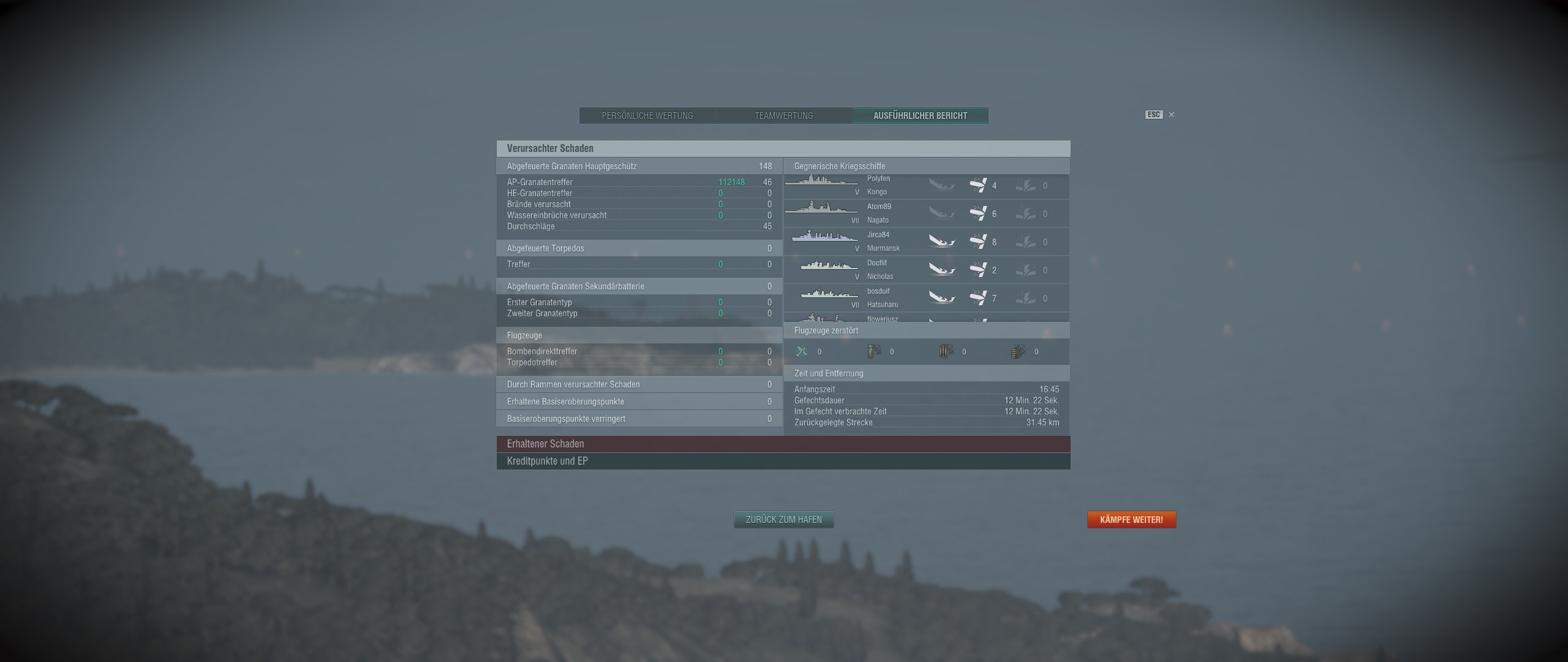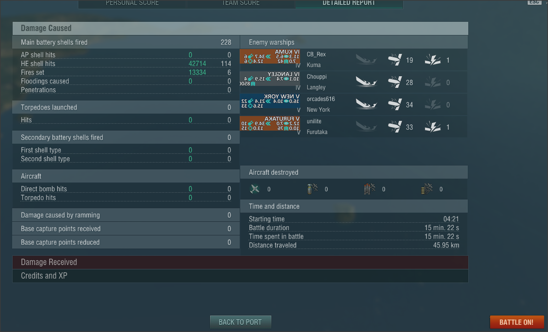 Die Omaha und ich hingegen werden glaube ich keine Freunde mehr... Ich glaube die letzten 10 Matches mit der Omaha habe ich allesamt verloren, dabei geschätzt 5 Kills (insgesamt!!) und bin jedes Mal drauf gegangen! Mit einer Win-Ration von 31% ist sie somit mein schlechtestes Schiff (sogar noch hinter der Langley