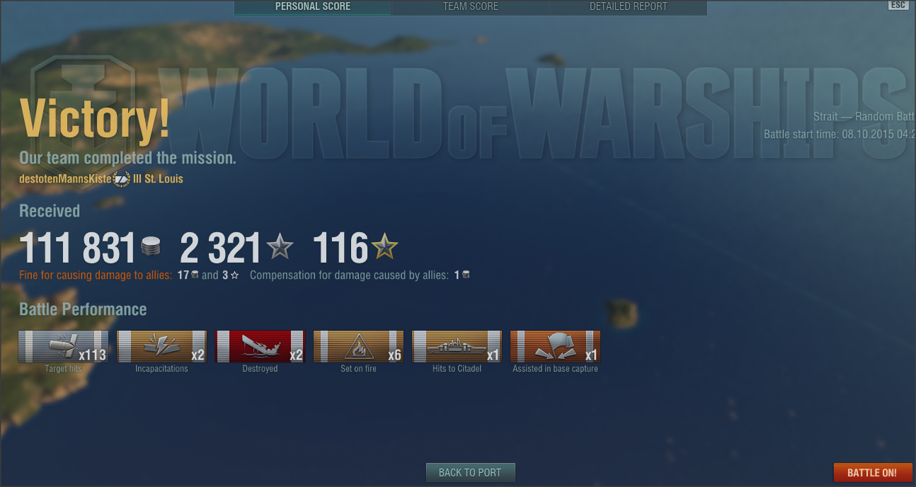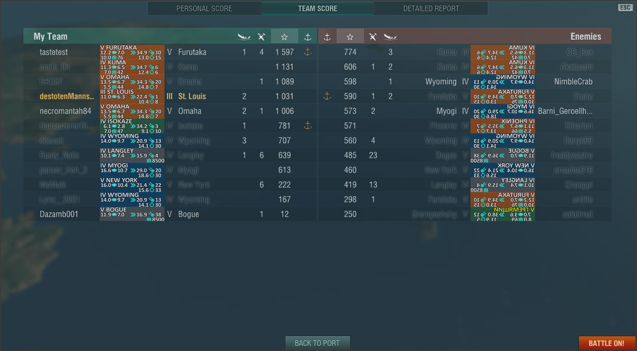 ). Der Punkt ist, dass ich es noch nicht mal auf das Schiff schieben kann. Ich spiele es falsch. Kanonen wie die St. Louis (die ich Liebe) und Torps wie ein IJN Kreuzer führen dazu, dass ich regelmäßig anfange in Kreisen oder Achten zu fahren und dabei Torps rauswerfe. Bedingt durch deren Langsamkeit und kurzen Reichweite findet dass alles an vorderster Front statt...dass muss schief gehen! Nur will sich ein richtiges Gefühl bei dem Ding nicht einstellen...