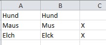 Ich würde mir gerne in einer 3. Spalte die Zellen anzeigen lassen, in denen es Unterschiede gibt.
