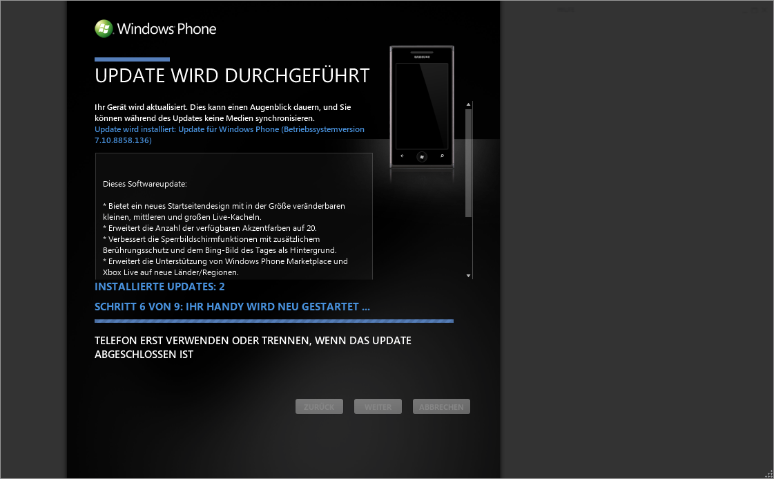 Beim aktuellen Update sind wohl mindestens drei Durchläufe erforderlich, bis alle Updates drinnen sind. Zielversion ist die 7.10 (8858.136).