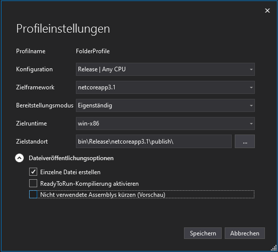 Wir haben uns erst mal für das .NET Framework entschieden und würde gern die WPF Anwendung als einzelne *.exe weiternutzen. Allerdings finden wir in Visual Studio nicht die Funktion dies als einzelne *.exe zu packen und zeitgleich kein Framework mitzuübergeben.