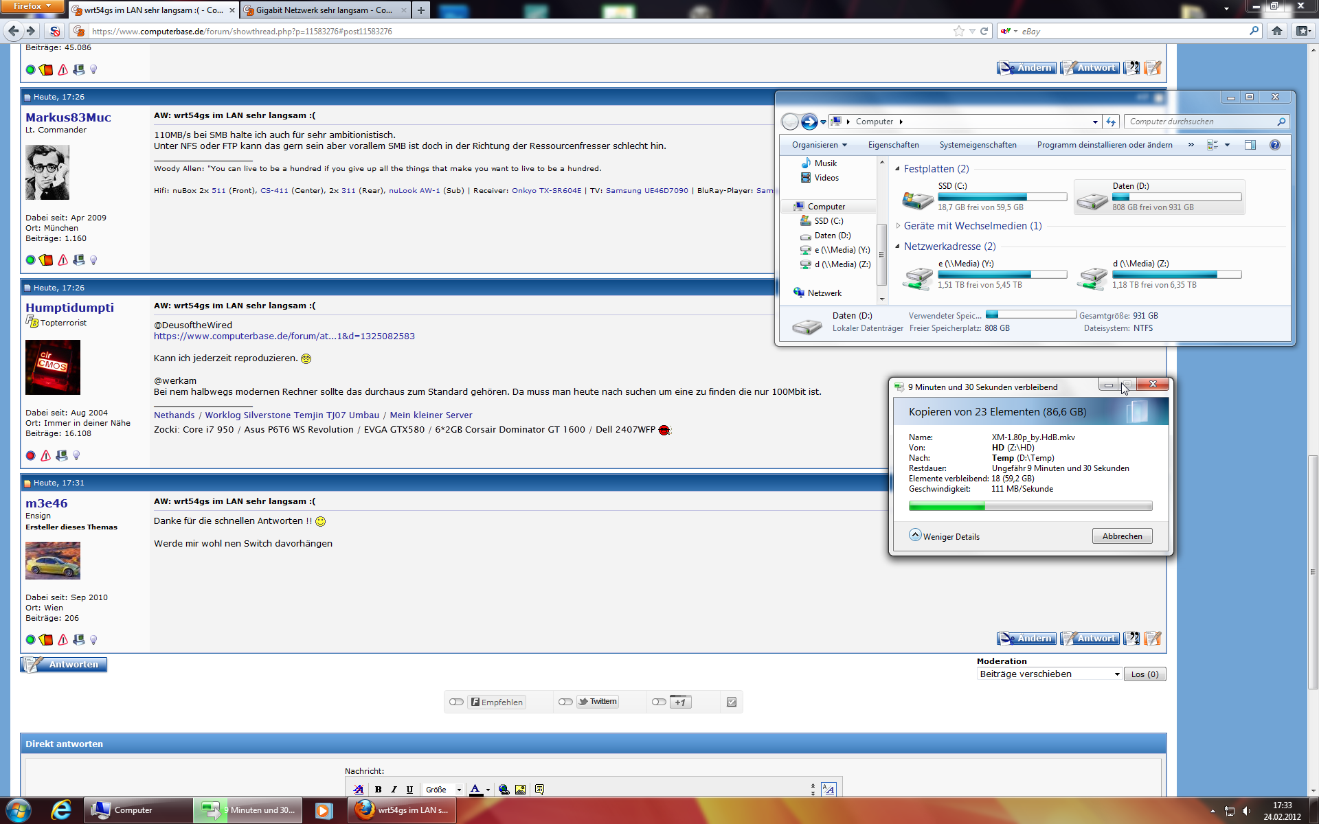 110 MB/s über den lumpigen Datei-kopieren-Dialog unter 7, nicht bei einem Test mit iperf und Konsorten? Lasse mich durch eine seriöse Quelle gern eines besseren belehren.