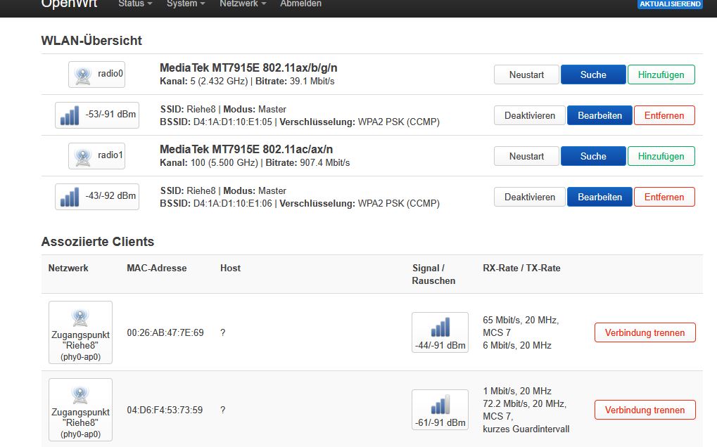 Stellt sich die Frage, was das verursacht hat, das einige Clients nicht mehr zu openWRT verbinden können?