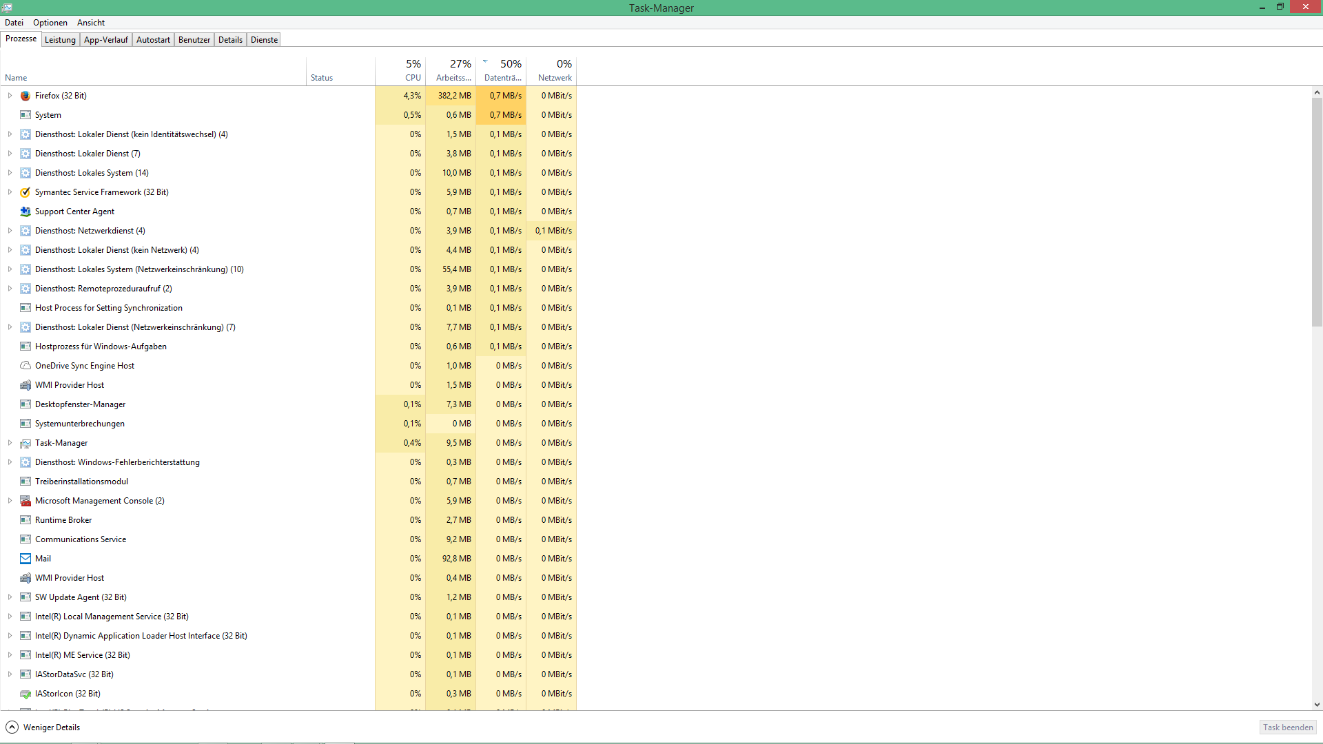 Parallele Zugriffe bremsen HDDs extrem aus, das ist normal und liegt daran, dass sich dann immer erst die Köpfe bewegen müssen. Ist die extene HDD entsprechend schnell, bleibt einfach keine Zeit für die Zugriffe die das System oder der Firefox machen möchten. Wie Du im Screenshot im letzten Post selbst siehst, gibt es gar nicht so wenige davon.