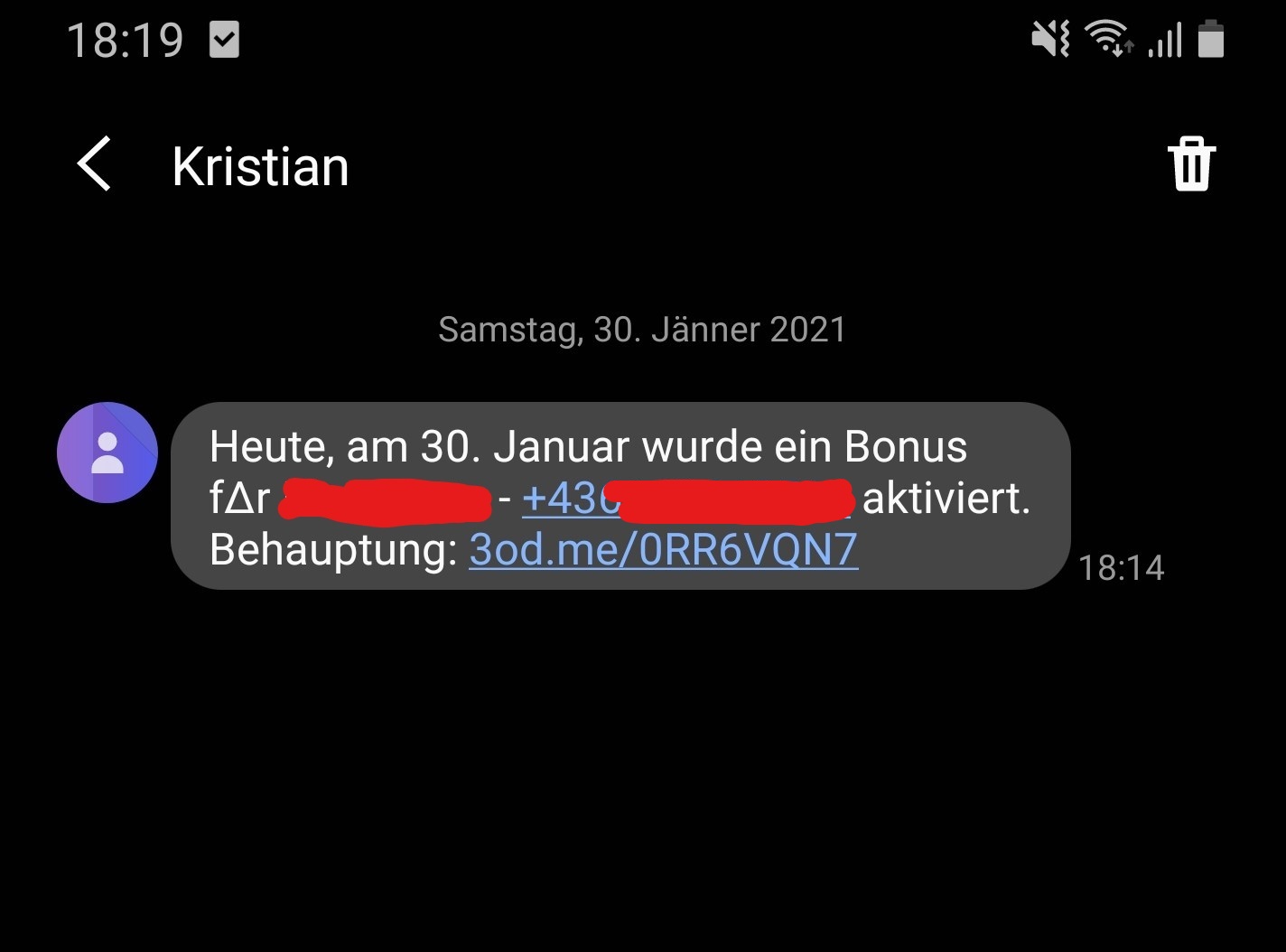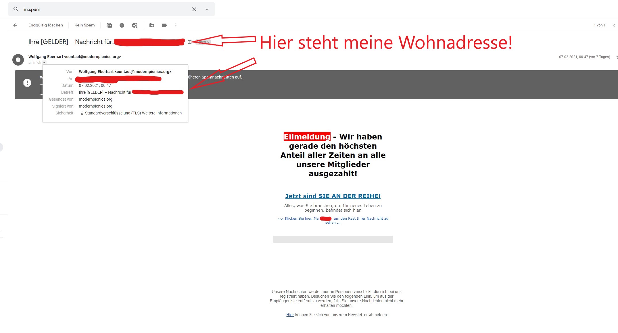 Anbei 2 Bilder. Zuerst bekam ich eine Anonyme SMS am 30.01 und ca. eine Woche darauf eine Mail mit !meiner Wohnandresse!.