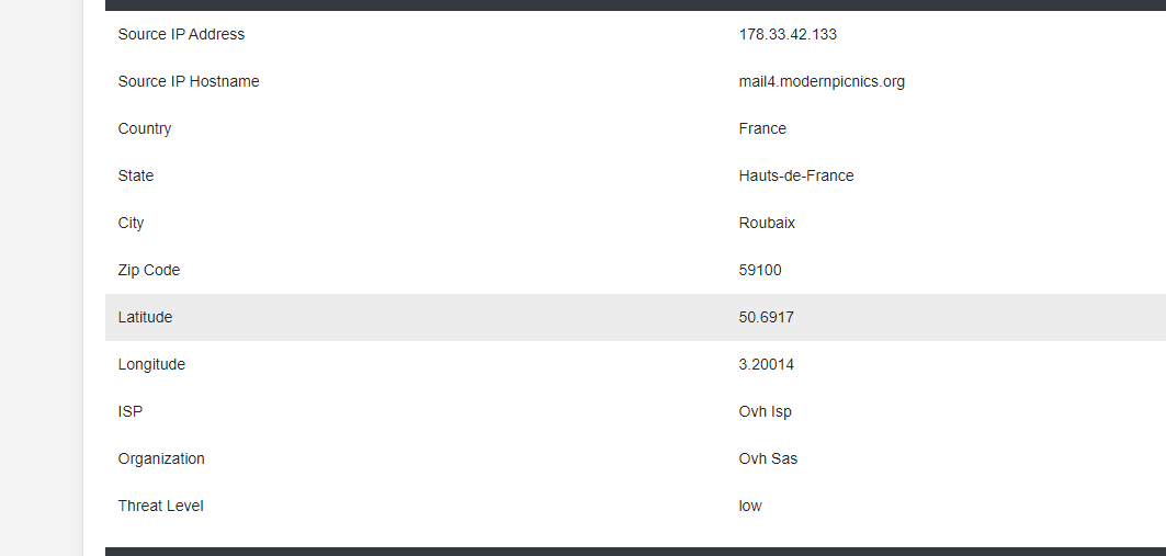 Ich habe bereits den Quellcode durchsucht und fand eine IP aus Frankreich.