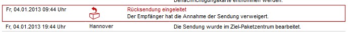 habe ich die Annahme des Pakets verweigert und wieder zurück gehen lassen.