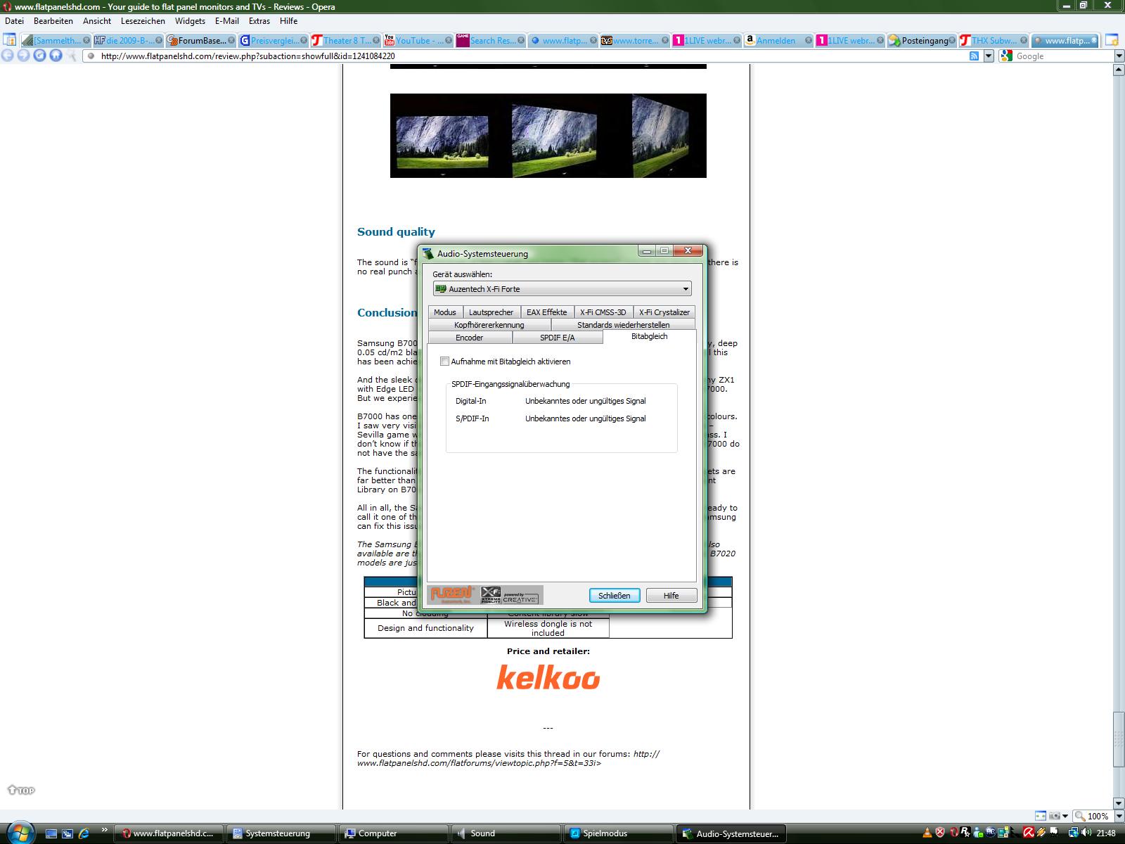 Da seh ich doch,dass in der Audiosystemsteuerung (X-Fi Forte) die Einstellungen des Reiter "SPDIF E/A" grau sind und "Bitabgleich"