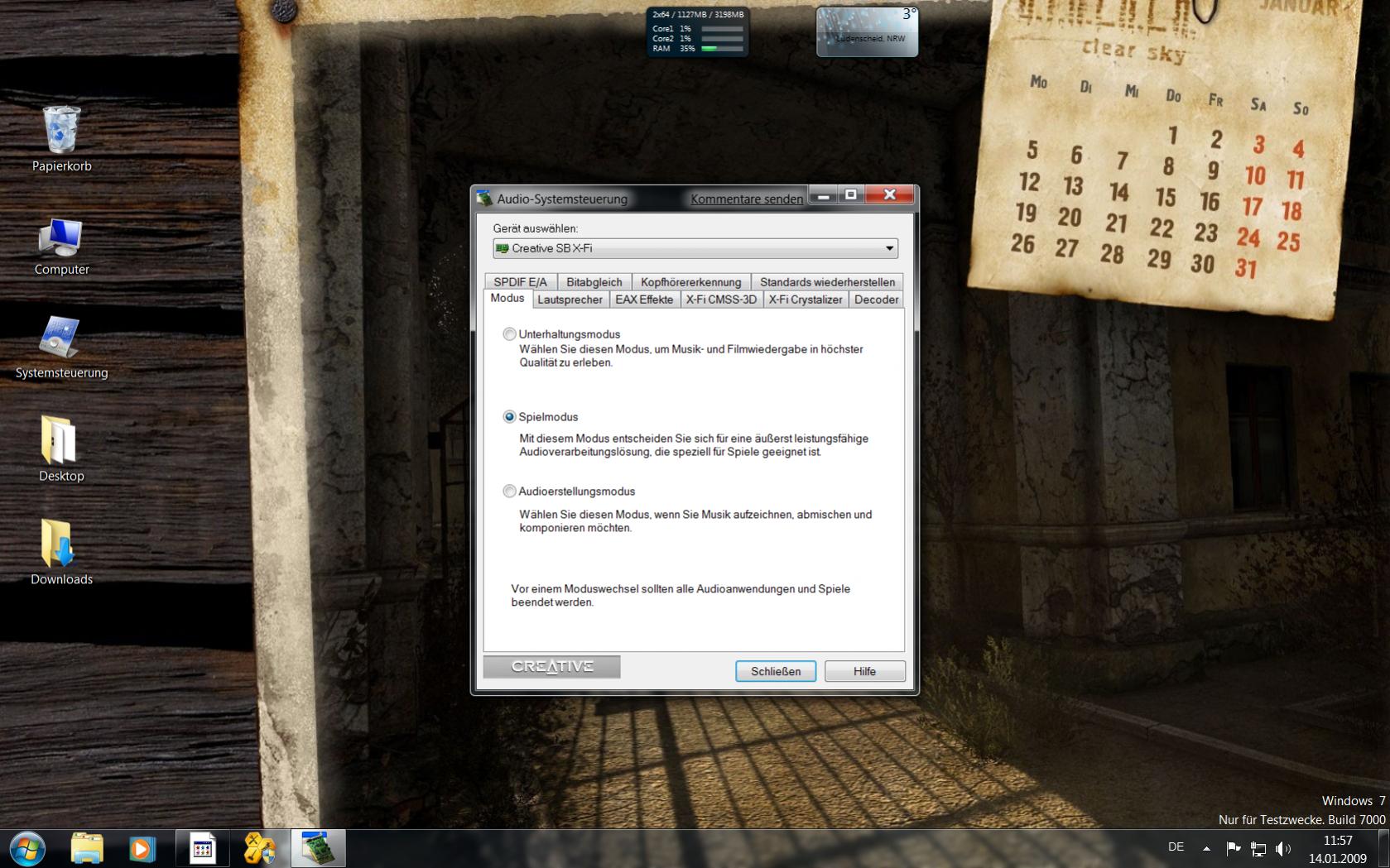 Ich hab eine, wenn auch nicht ganz optimale, Lösung gefunden. Ich hab zu erst Vista installiert, danach die Treiber für die X-Fi und anschließend das upgrade auf Windows 7 durchgeführt.