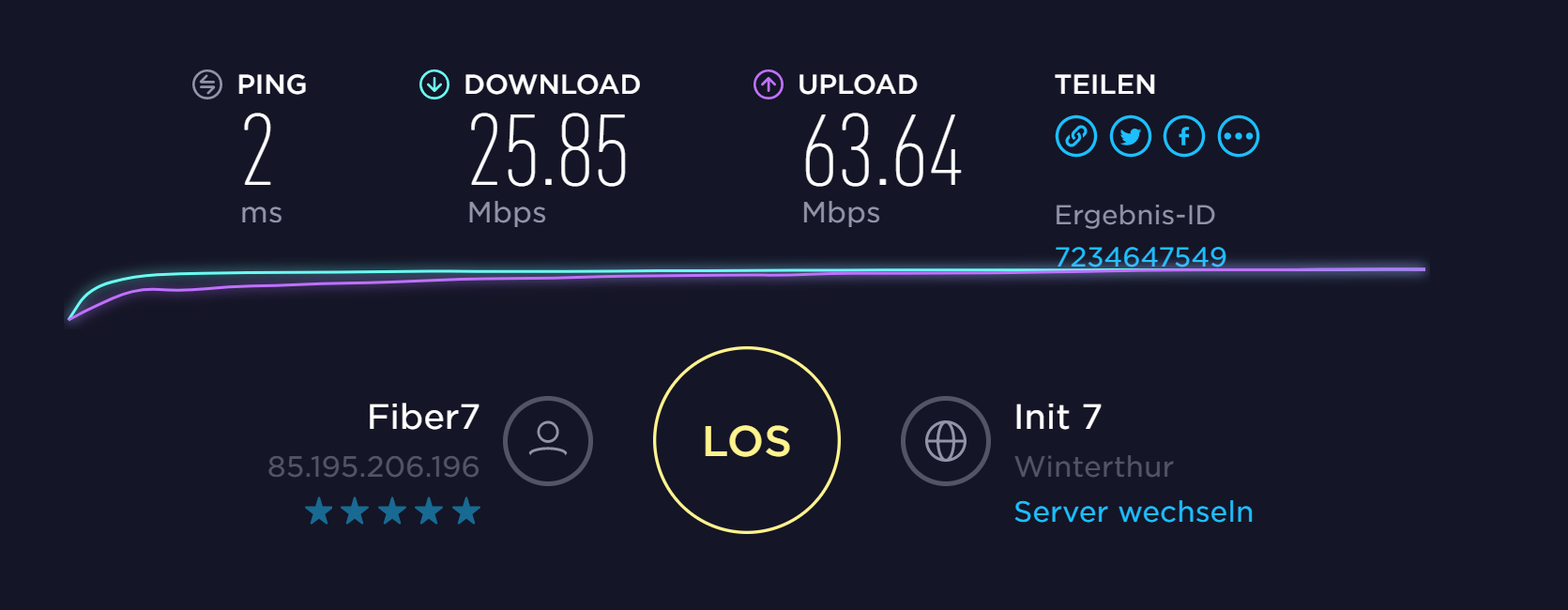 Wenn ich nun jedoch den Laptop zuklappe und wieder öffne und dann einen Speedtest mache, kommt das dabei raus: