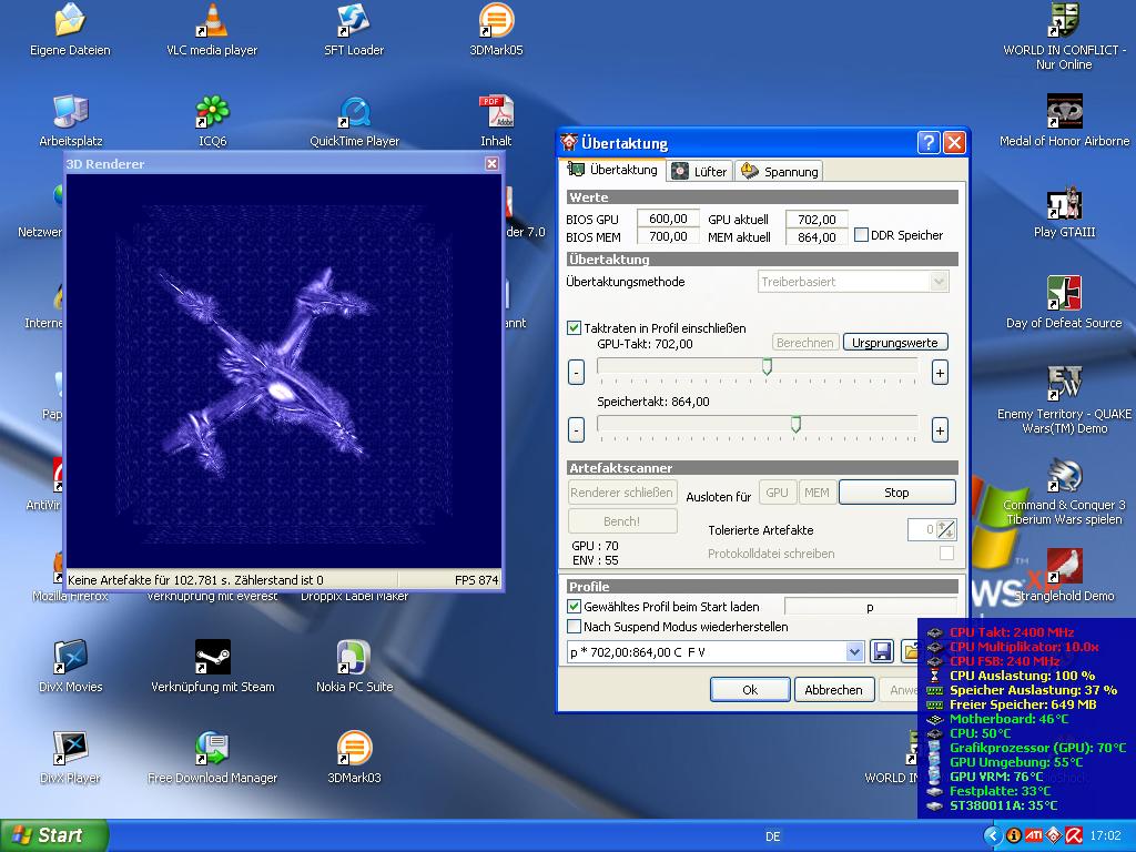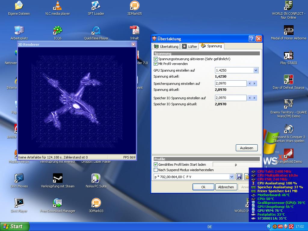 habe dann meine x1800xt etwas mehr geoced habe dabei die volt von 1,3 auf 1,4 angehoben