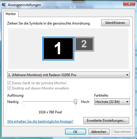 Hab nich gesehen das die Karte mit meinem TV auf Klon war. D.h. der TV macht nur 1024 und das hat er auf den Windows übernommen. Schon komisch, dass das die Standardeinstellung nach der Windowsneuinstallation und TreiberInstallation war...