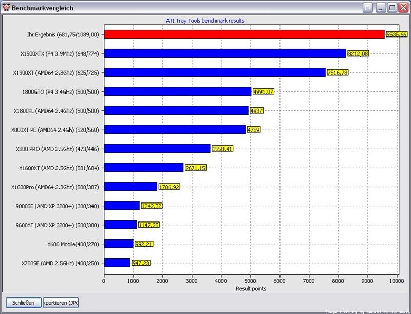 Wenn ich den att den bench mache bekomme ich Werte unter einer 1800xt und er zeigt mir an, dass er mit oben genannten Werten lief.