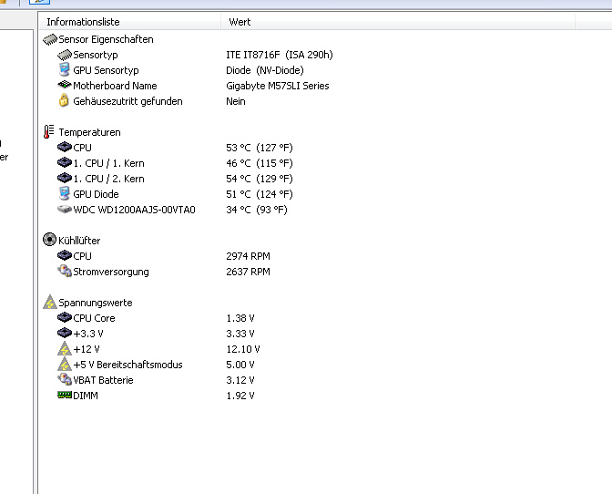 Dort hast du dann schön übersichtlich die drei Temperaturen aufgelistet. Er wird dir dann vermutlich anzeigen, dass die Cores kälter sind als die CPU, wie gesagt das kannst du ignorieren, dich interessiert nur die CPU Temp.