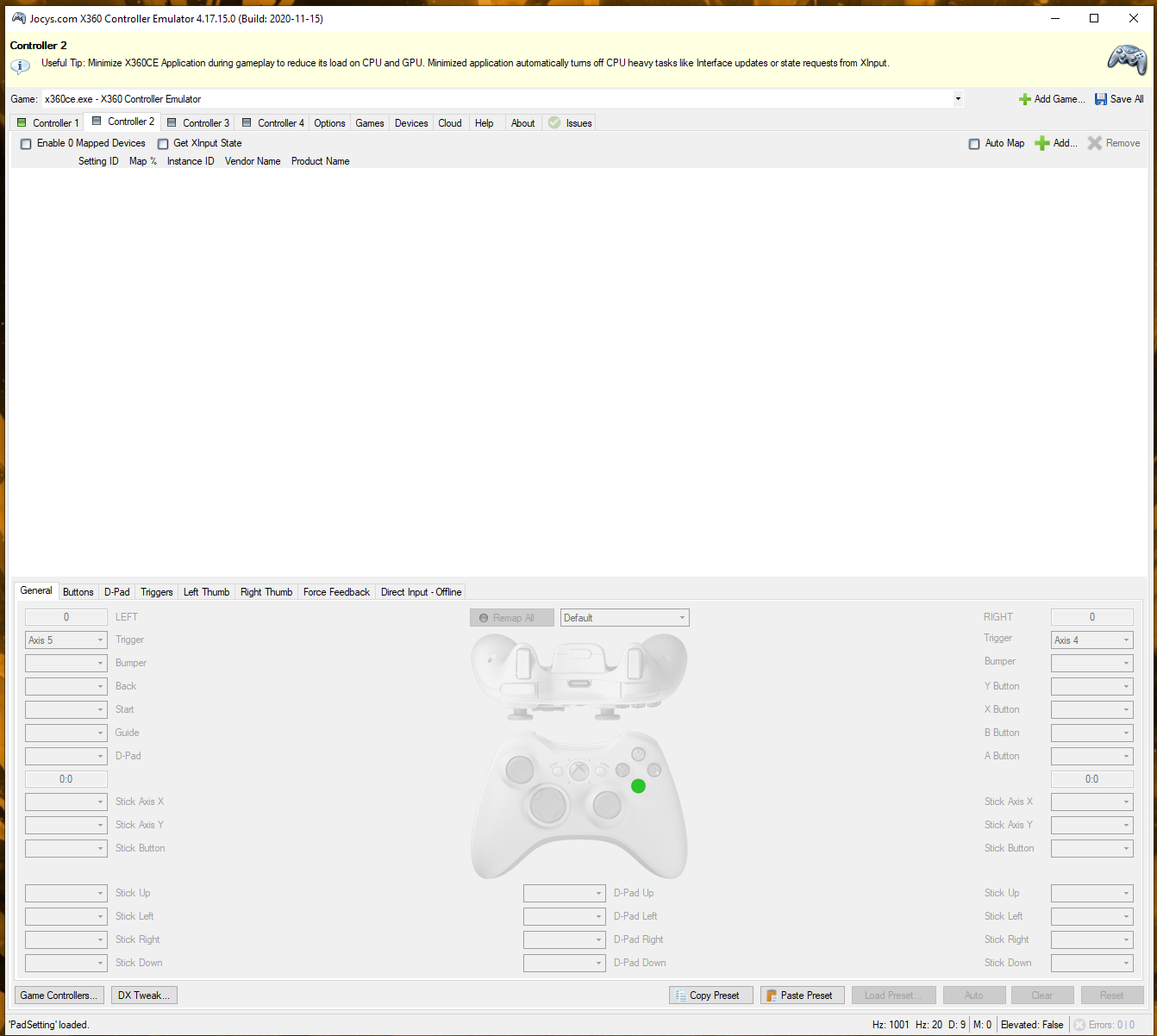 ich wollte eben eine Config für x360ce erstellen, jedoch wird die Taste7 / A nach dem ersten mal belegen von der Software selbstständig dauerhaft gedrückt. Ich habe versucht diese Taste zu invertieren oder eben nicht zu belegen, aber A wird ständig gedrückt gehalten.