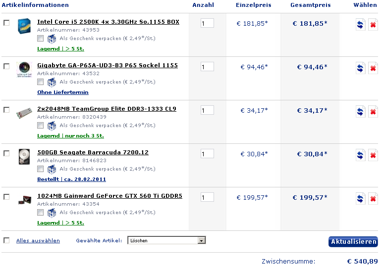 Ob ich zumindest mal auf den Paperlaunch von Bulldozer warte, habe ich noch nicht entschieden, zu welcher SB-CPU (2400 oder doch 2500k) ich greife auch noch nicht.