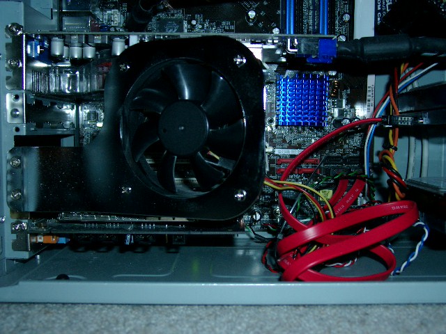 Zwischen dem originalen Grakakühler und dem Chipsatzkühler habe ich nämlich auch schon ziemlich wenig Platz, wie auf den Fotos zu erkennen ist.