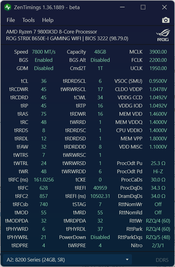 pajaa schrieb:Frage, weil mein 9800 zur Zeit recht ansehnlich mit 7800MT/s läuft