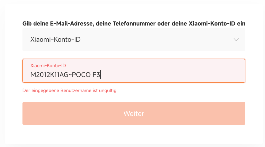 Bedauerlicherweise bleibt das Smartphone bei dem schwarzem Bildschirm stehen. Wenn ich auf Aktivierung gehe, dann steht die alte Handynummer drin, an die der Code gehen soll, obwohl im Xiaomi Konto die richtige hinterlegt wurde.