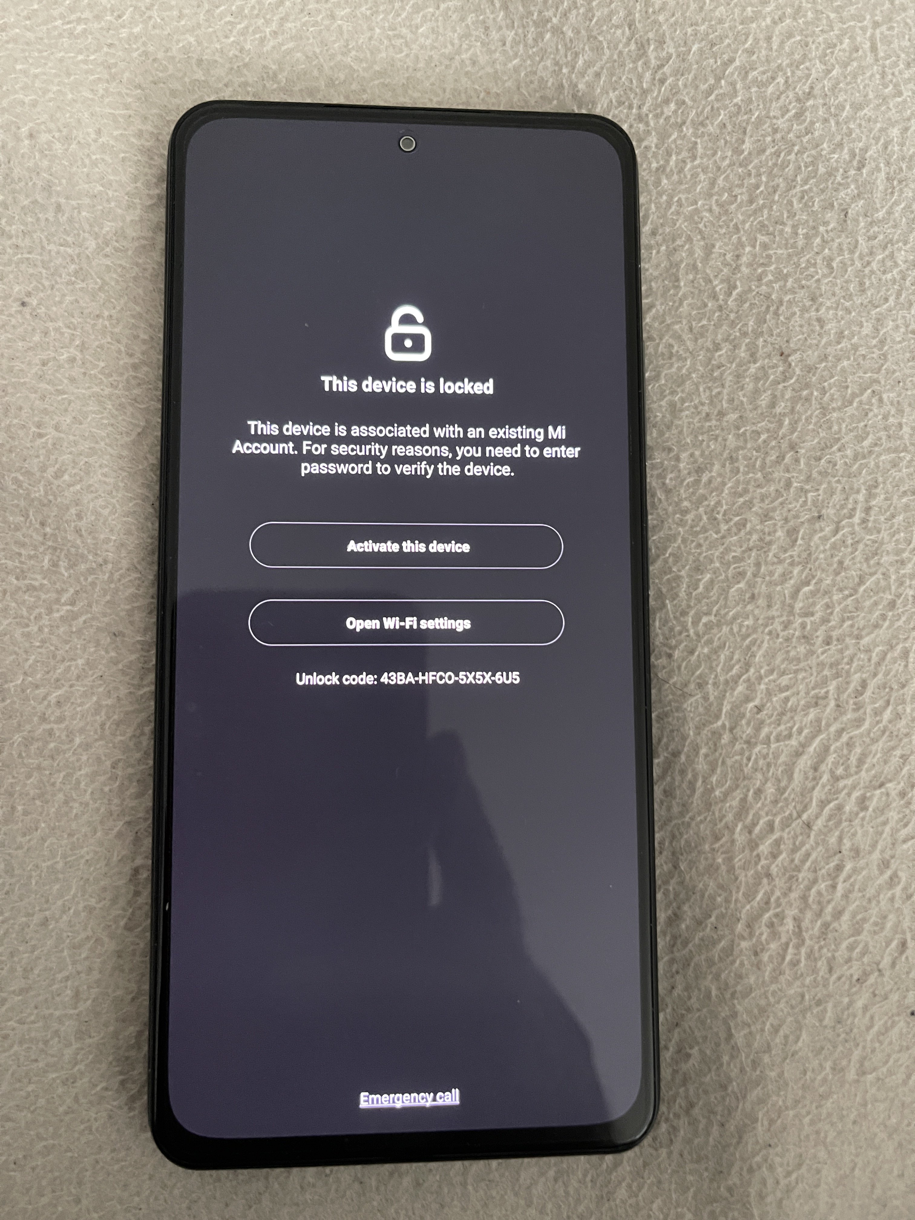 Aber bei mir kommt, wird das folgende Bild gezeigt: "Device is locked". Leider habe ich die angegebene Handynummer nicht mehr, um den Code anzufordern.