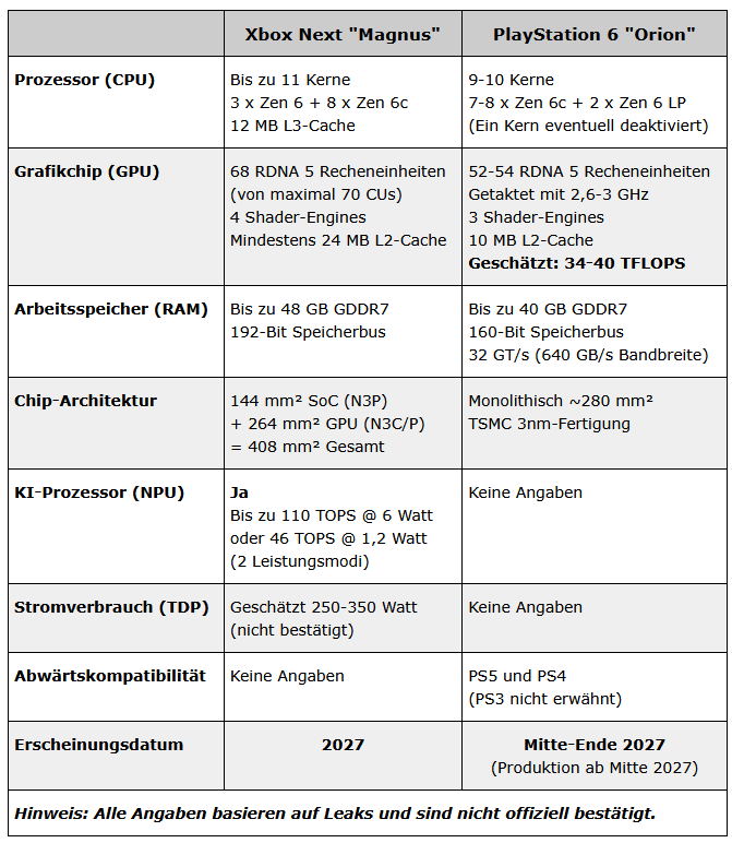 Kepler2 hat neben der OLED‑Version des PlayStation Portal auch Details zur Xbox Magnus preisgegeben. Winfuture hatte die Details mal in einer Tabelle gegenübergestellt. Ich bin gespannt was dran sein wird.
