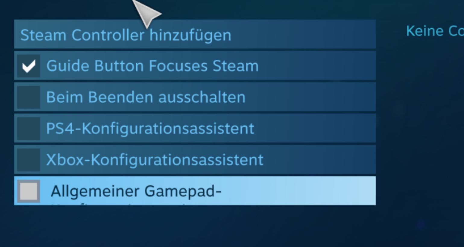 PS: Ich habe so eine dunkle Ahnung, das es irgendwas mit den Steam-Controller-Optionen zu tun hat. Ich habe mal ausversehen im Big Picture Modus Steam-Controller hinzufügen oder so gewählt und um den Zeitraum rum fingen auch die Probleme an. Die Farbgebung von der Tastatur sieht auch verdächtig nach Steam aus...