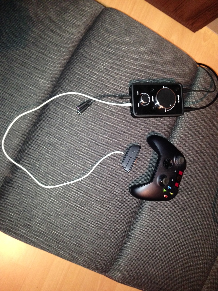 Also man geht von der Xbox One über Toslink an den Mixamp ( 3 Meter im Lieferumfang dabei ). Von dort aus an den KH und MIC. Fertig... man hat Ton der zwar von der Lautstärke keine großen Reserven nach oben hat weil dem Mixamp einfach die Leistung fehlt aber man kann Zocken.