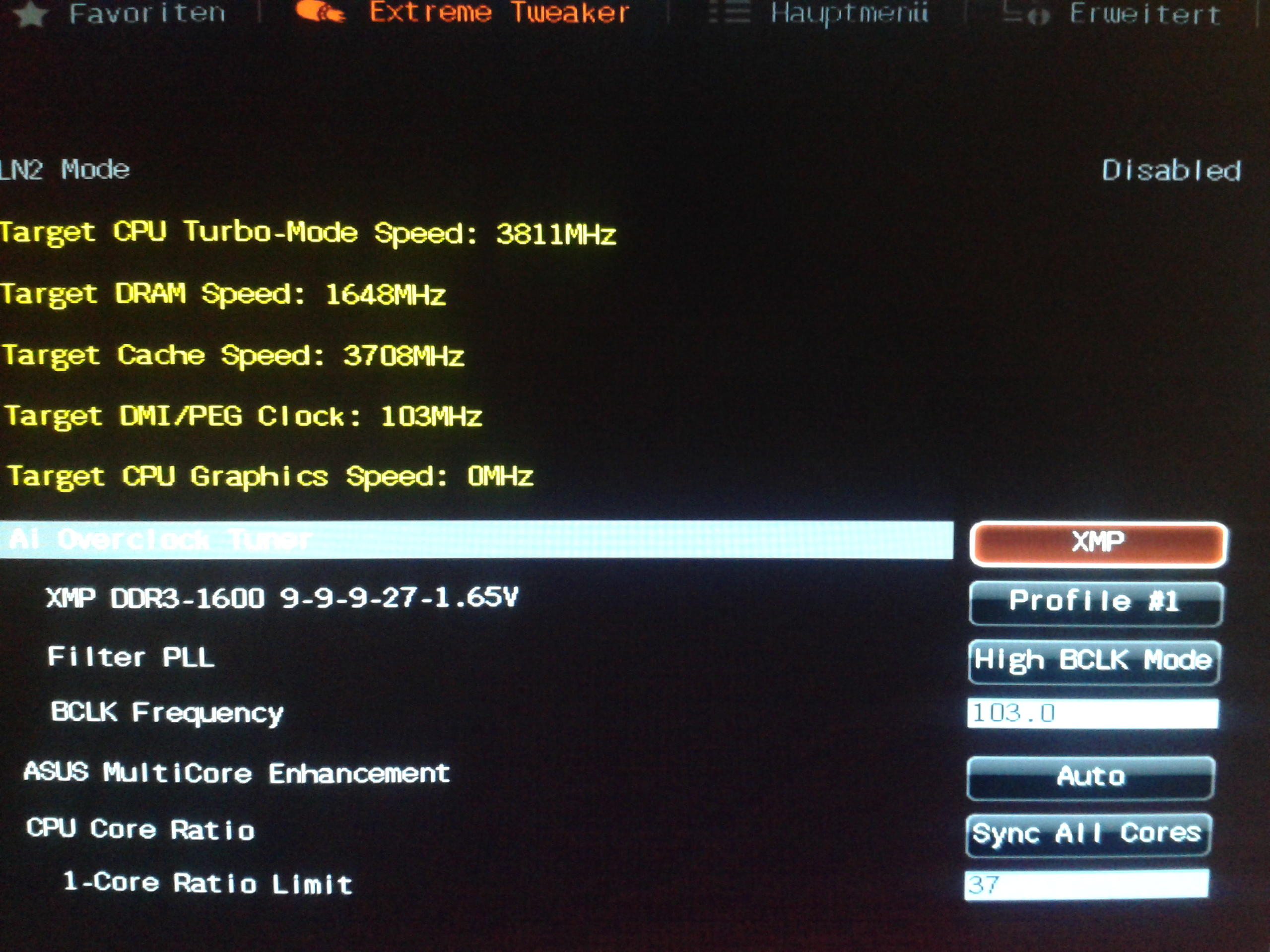 Also habs jetzt nochmal Probiert!Es steht sogar oben TURBO Target auf 3700 aber er macht es einfach nicht!Meinst du es Könne wirklich noch an der Spannung liegen?weil den BCLK wollte ich nicht übertakten!
