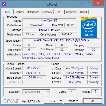 1 x Intel Xeon E3-1225 v3, 4x 3.20GHz, Sockel-1150, boxed (BX80646E31225V3)