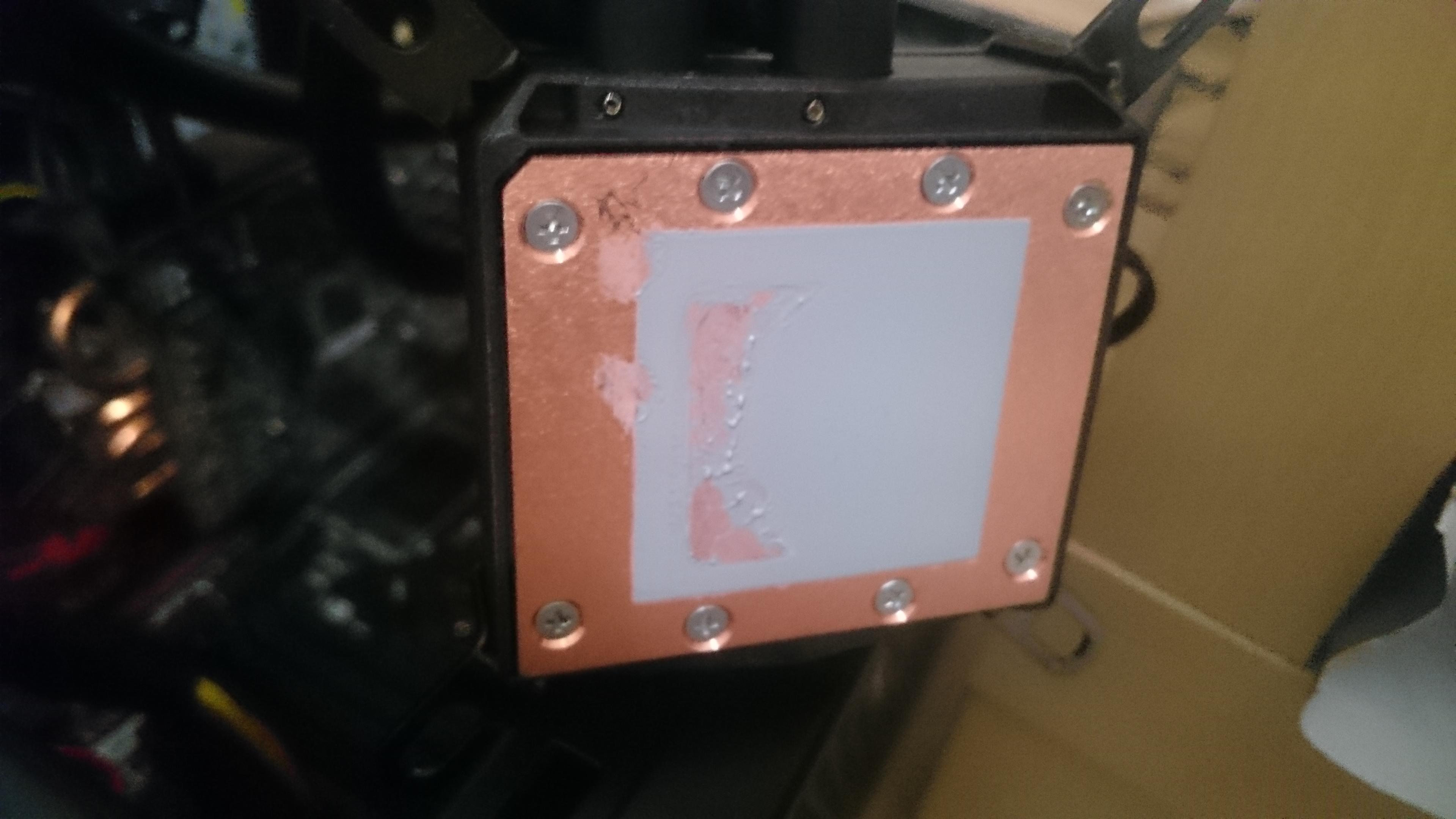 Bewegen ließ er sich nicht. Aber als ich den Kühler abgebaut habe sah die Wärmeleitpaste heute so aus: