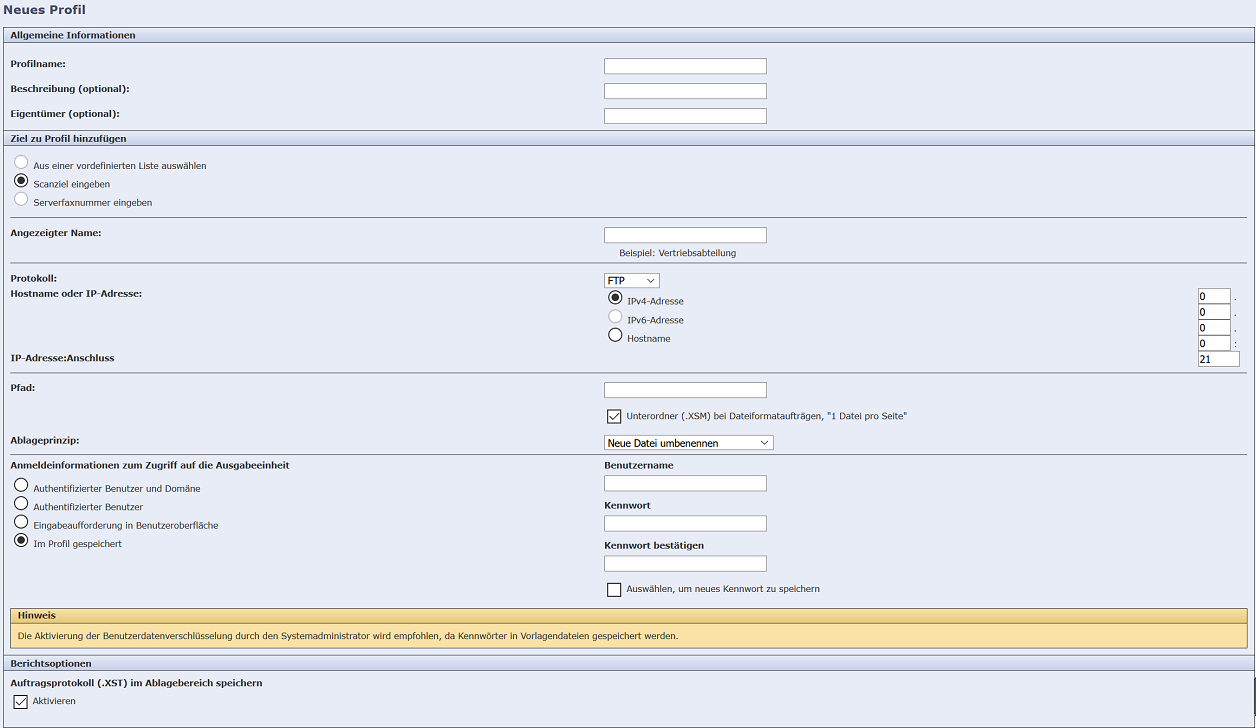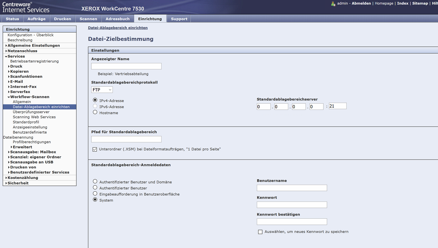 Ich habe 2 Einstellungen gefunden bei XEROX und Protokoll sind zur Verfügung: FTP,SFTP,SMB,HTTP, HTTPS