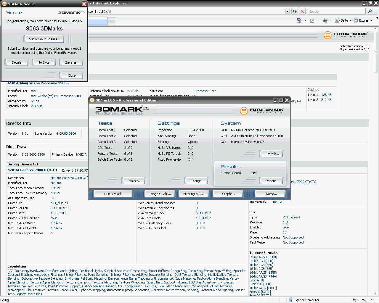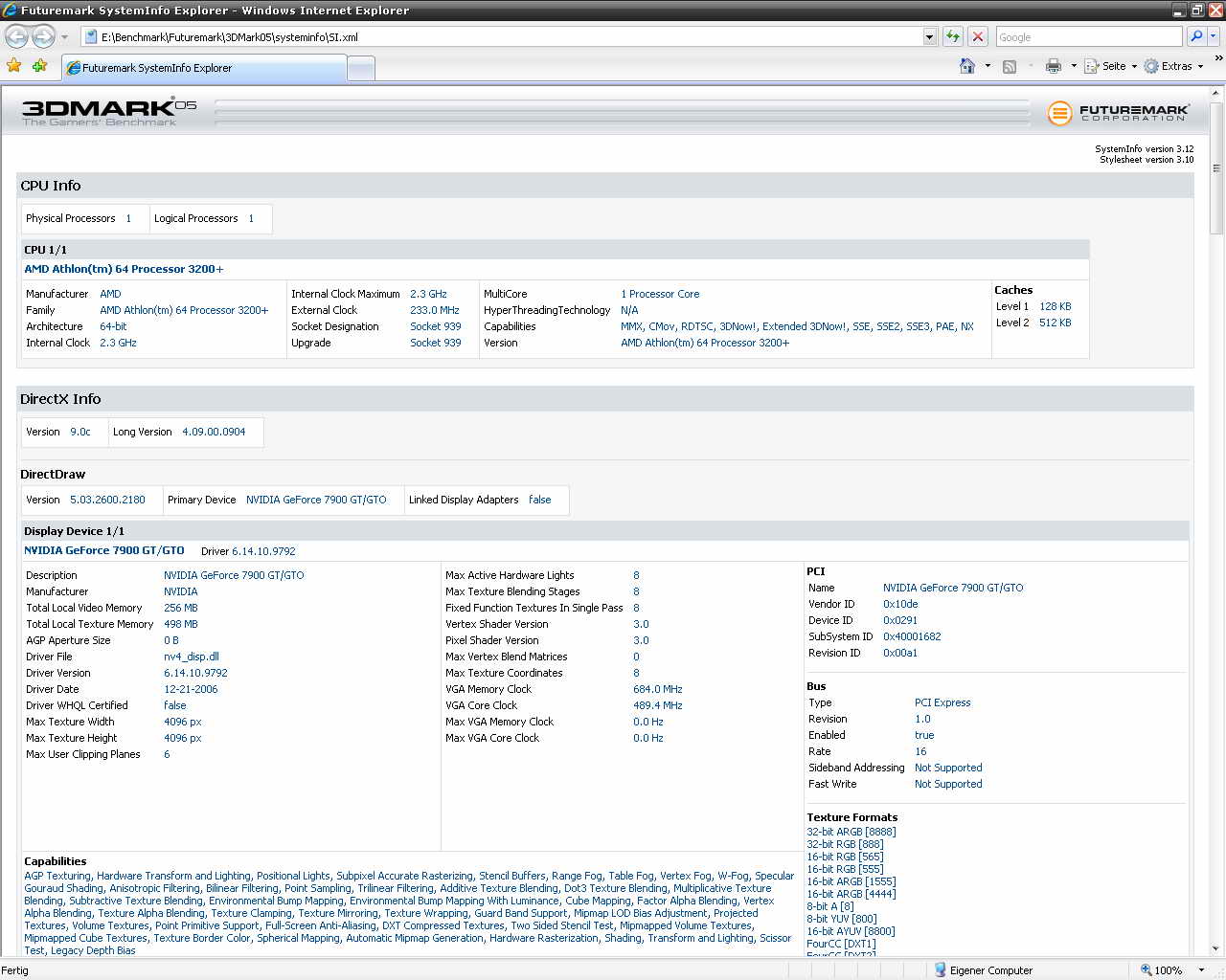 Bei deinen 8000 3DMark punkten solltest du vieleicht mal erwähnen, daß dein 3200+ mit 2,3 Ghz läuft und du einen Takt von 233 Mhz hast !