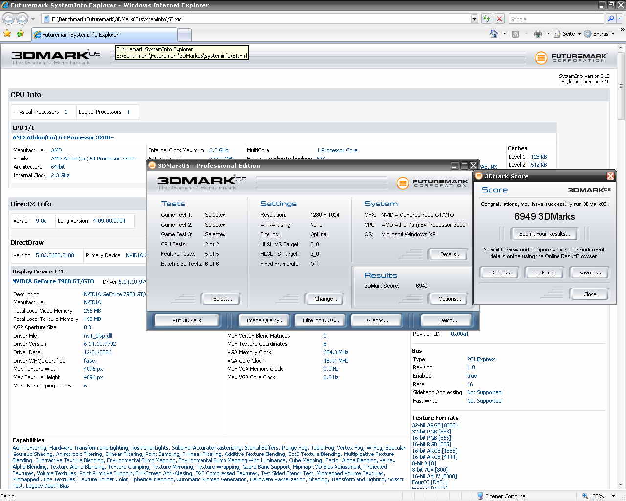 Also im benchmark 3Dmark05 habe ich 5950 Punkte erreicht.