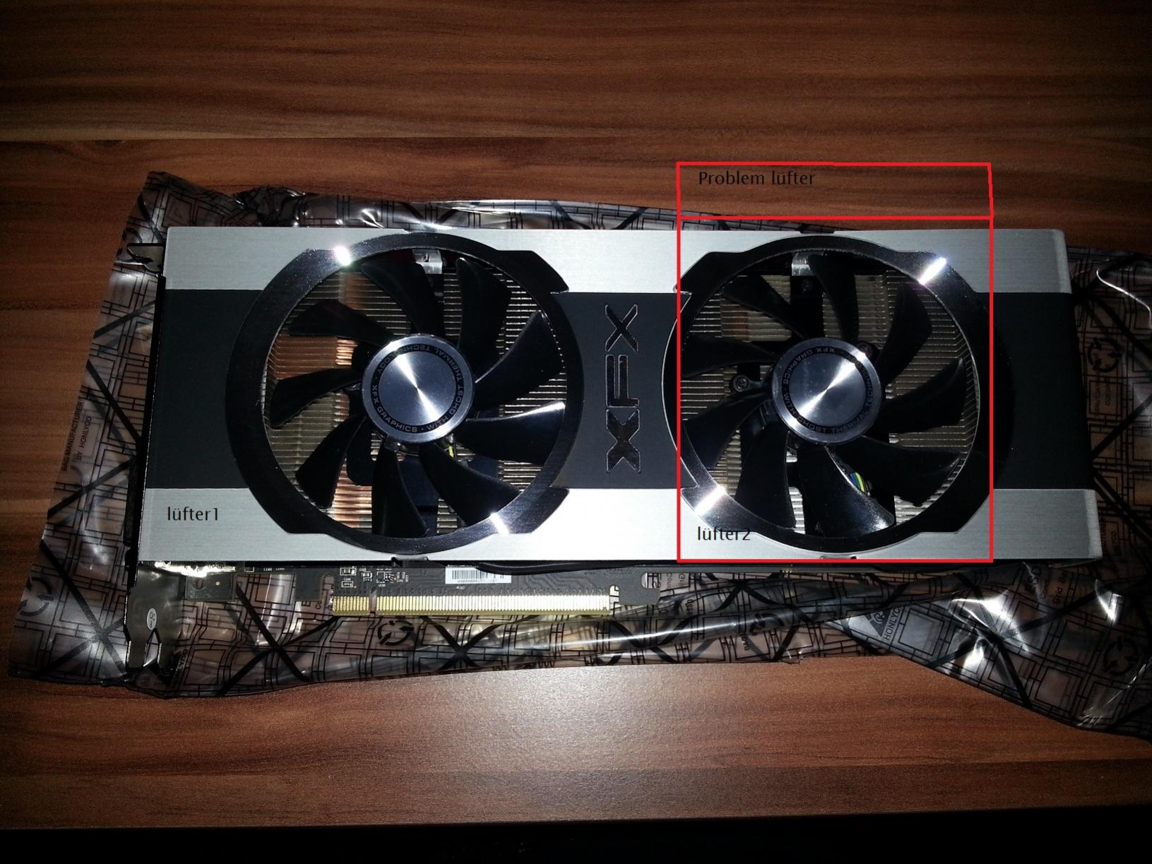 xfx 7970 2 lüfter hinten geht bei 70C aus (halt wen ich spiele unter voll last dan) und läuft dan ma wieder aber laaangsam und geht später wieder aus als ob er ne pause braucht,(versteht es nicht falsch der lüfter geht aus wen die karte warm wird und die temparatur geht weiter hoch!) beim start läuft er halbwegs normal zwar immer deutlich langsamer als der 1lüfter aber naja.