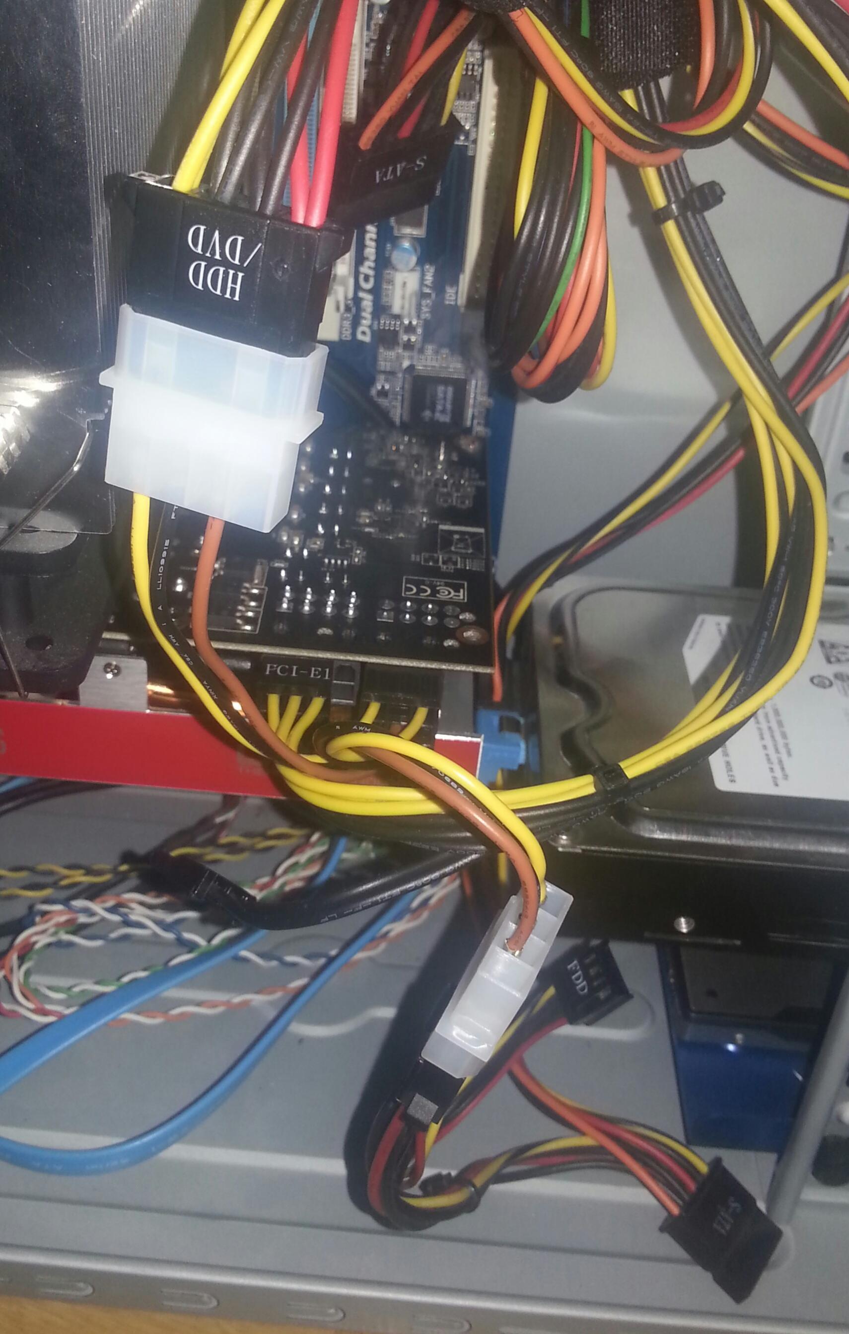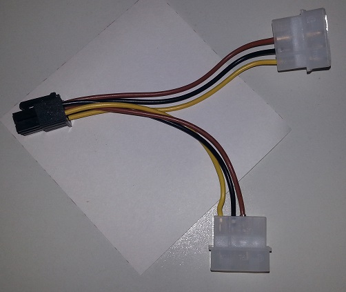 Ich hab einen Adapter an einen HDD/Molex-Anschluss geklemmt (beide Molex-Stecker des Y-Adapters allerdings an einen Strang, kein zweiter frei) und damit 2x 6-Pin. Ein Pin von 6 des PCIe-Adapters ist frei, ich habe aber irgendwo gelesen, dass das ok ist.